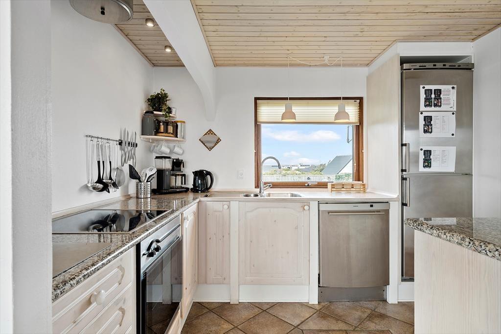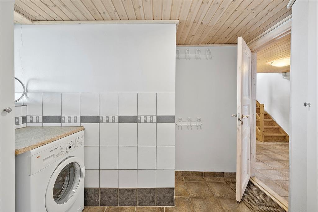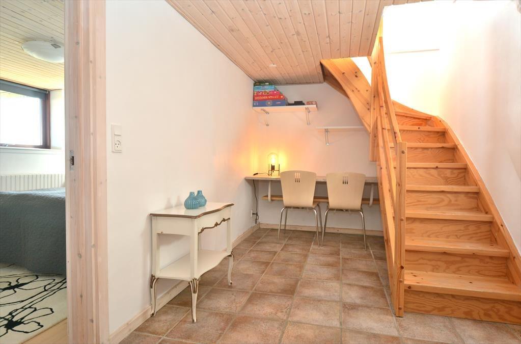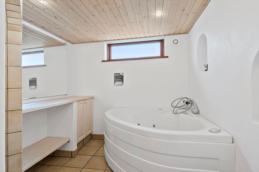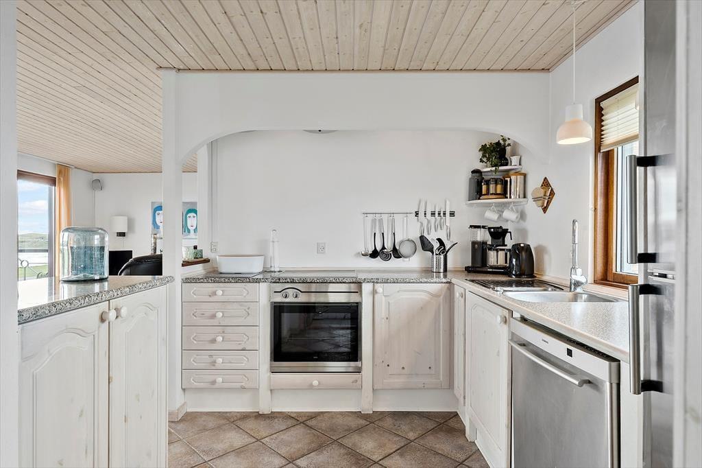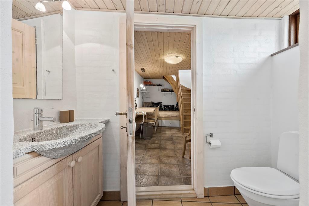 Allerede når I træder ind i huset, bliver I mødt af en lys og indbydende atmosfære, der straks får jer til at føle jer hjemme. Entréen giver adgang til gæstetoilet, trappe til underetagen og det store køkken/alrum, som er husets naturlige samlingspunkt. Her er der god plads til at lave mad, spise sammen og bare nyde ferien i hyggelige rammer. Fra alrummet er der direkte udgang til en skøn træterrasse, der forlænger opholdsrummet ud i det fri. På samme etage finder I et af husets soveværelser, mens underetagen byder på et rummeligt badeværelse med både bruser og spabad – perfekt til afslapning efter en aktiv dag. Her ligger også et ekstra soveværelse og et kontor, hvor der er plads til ro og fordybelse.