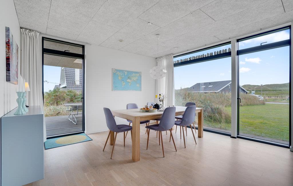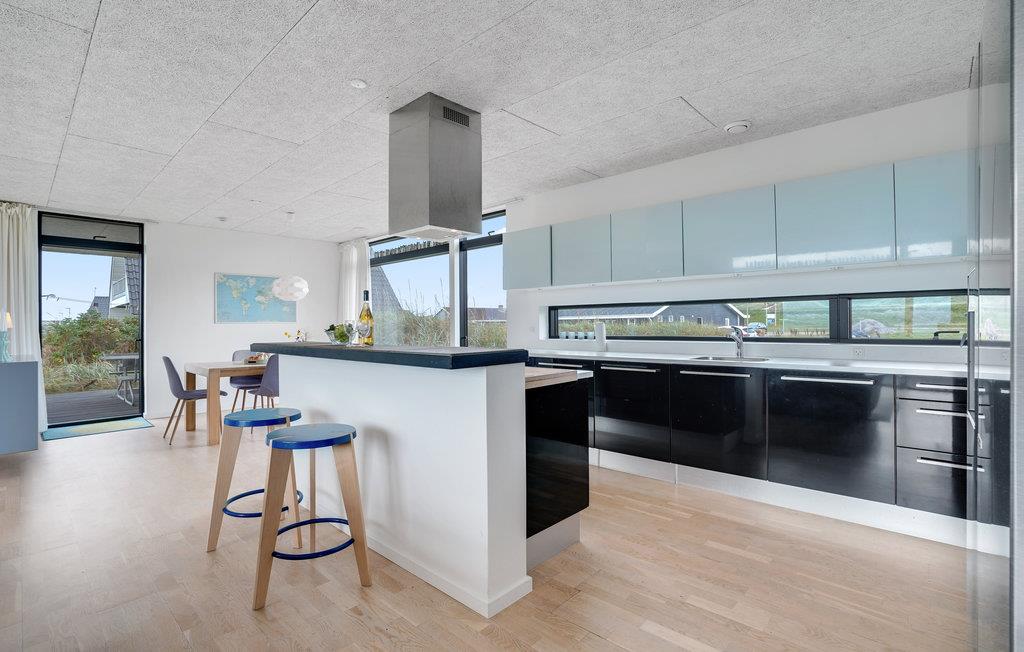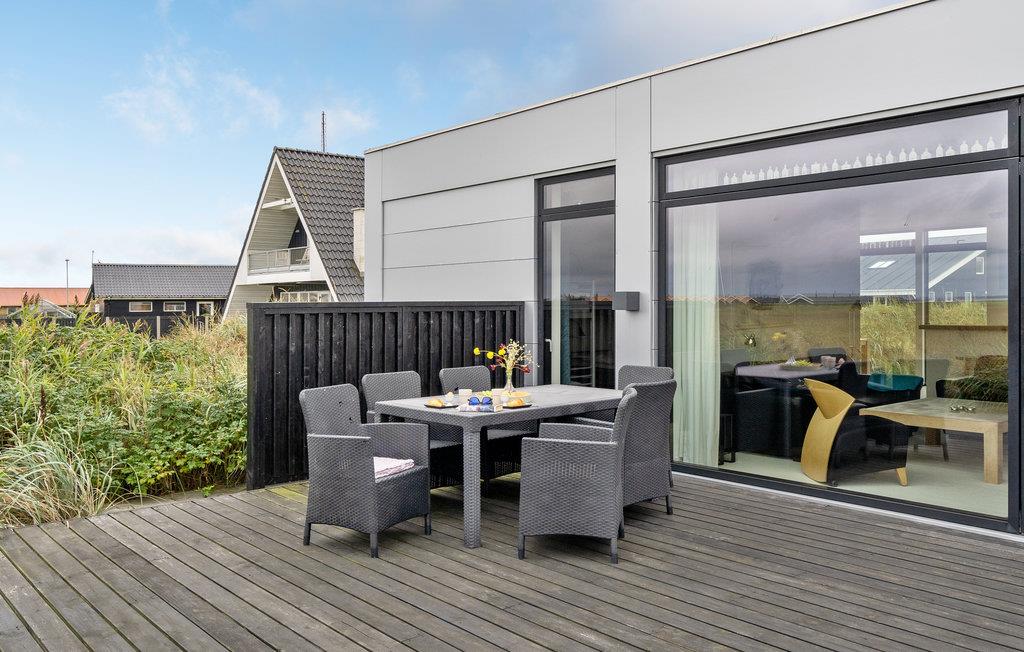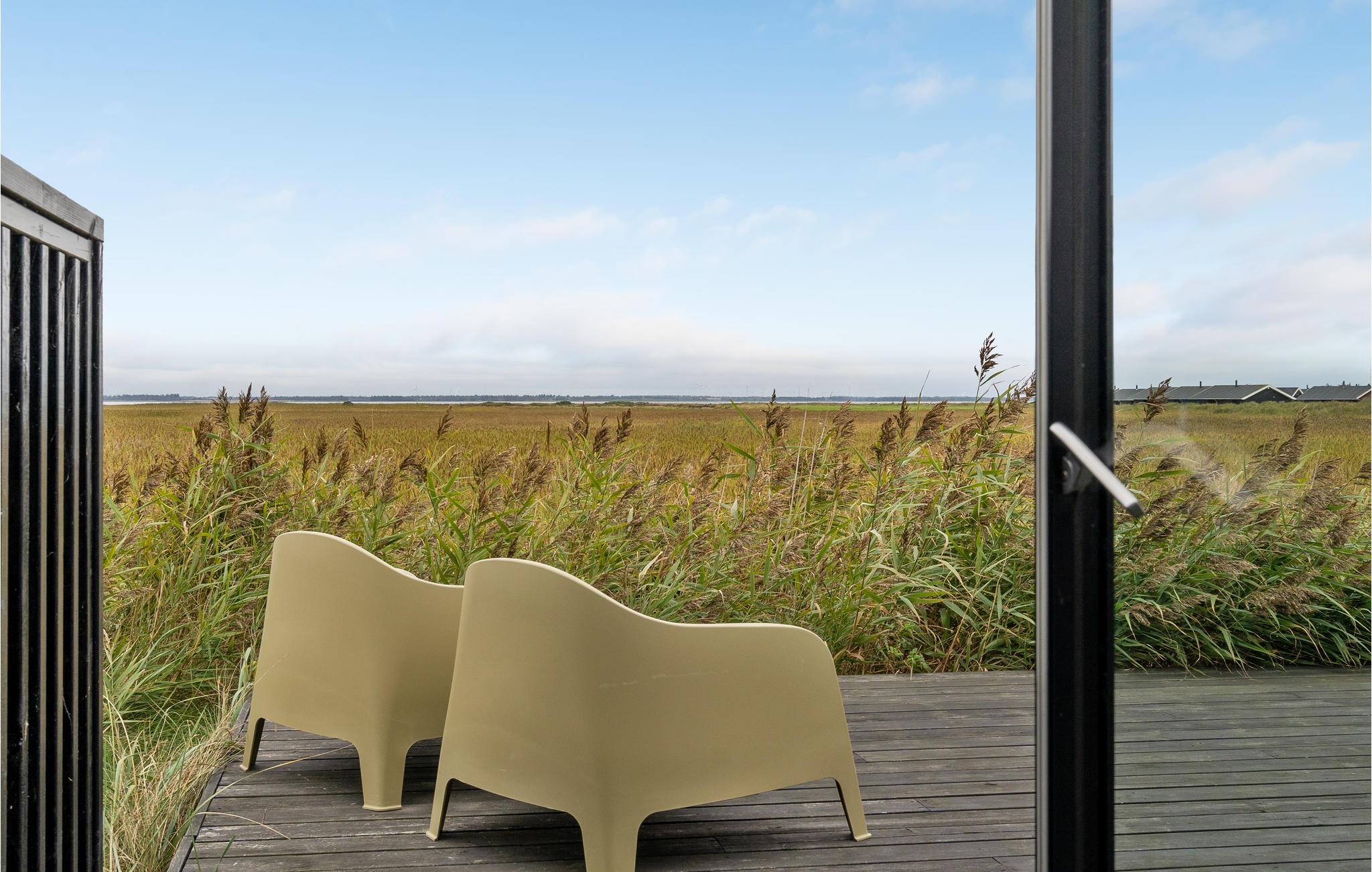 Kun 200 m fra havet og med panoramaudsigt over fjorden ligger dette stilrene og moderne kvalitetshus, hvor der er lagt vægt på høj komfort og velvære. Der hører to store terrasser til huset, hvor det er dejligt at sidde og nyde den friske vesterhavsluft. Det strømmer ind med lys i den store stue der er åben mod køkkenet. I vil sove godt i de to soveværelser og nyde det luksuøst store badeværelse. Der er behagelig varme, da der er gulvvarme i hele huset. Hvis I kan løsrive jer fra ferieparadiset, så smut en tur til Holstebro, der er en by med mange former for kunst. I kan også gå på indkøb i de mange butikker og spise og drikke kaffe på et af de mange spisesteder.