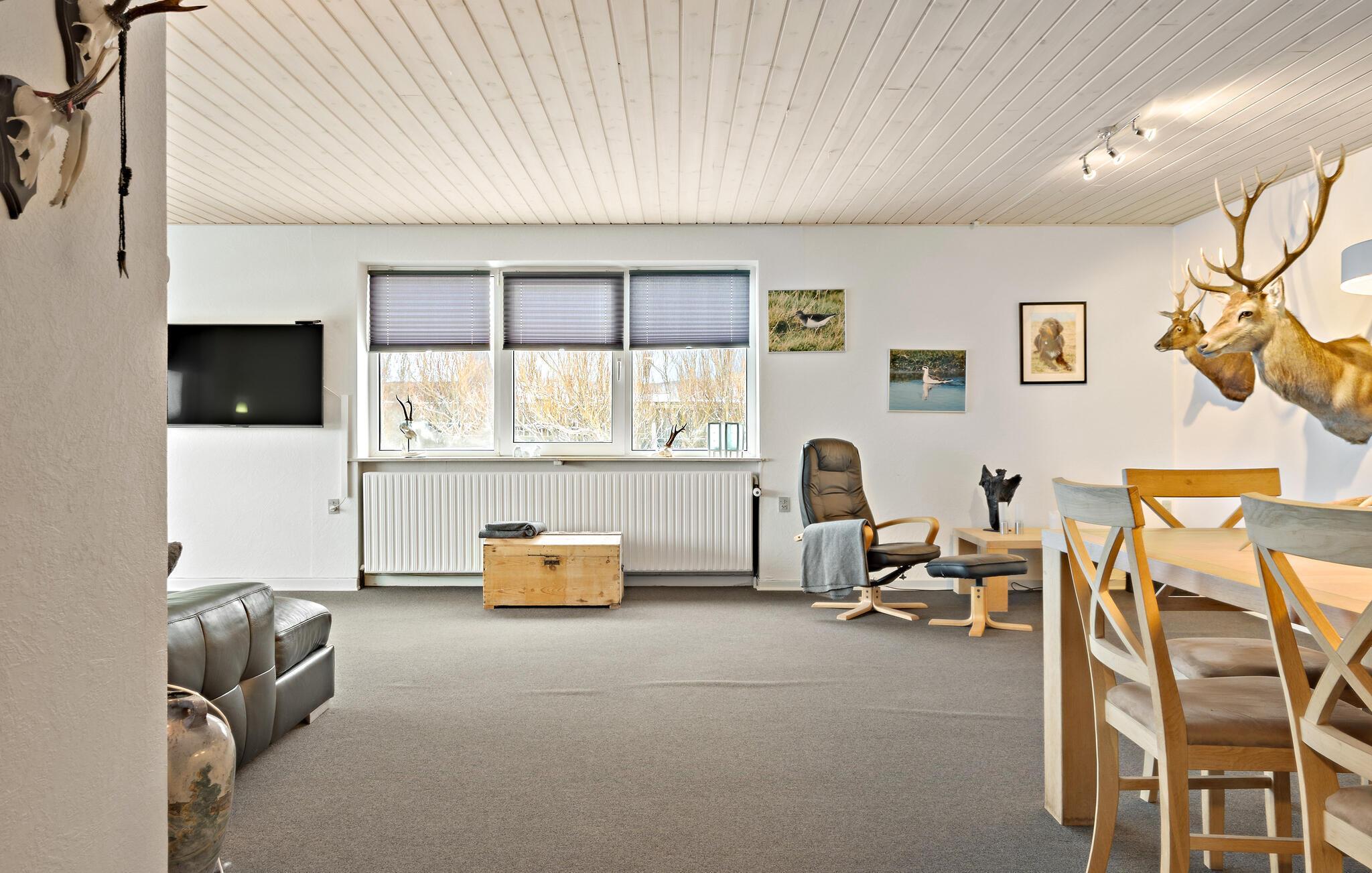 Huset er veludstyret og har en fantastisk beliggenhed mellem Vesterhavet og Nissum Fjord. Indretningen fremstår både rummelig, varm og hjemlig, og man kan næsten ikke undgå at slappe af i de hyggelige, åbne fællesrum. I køkkenet kan I gøre madlavningen til et fornøjeligt fællesprojekt, og i stuen kan I se frem til mange gode timer med jeres medbragte bræt- og kortspil.