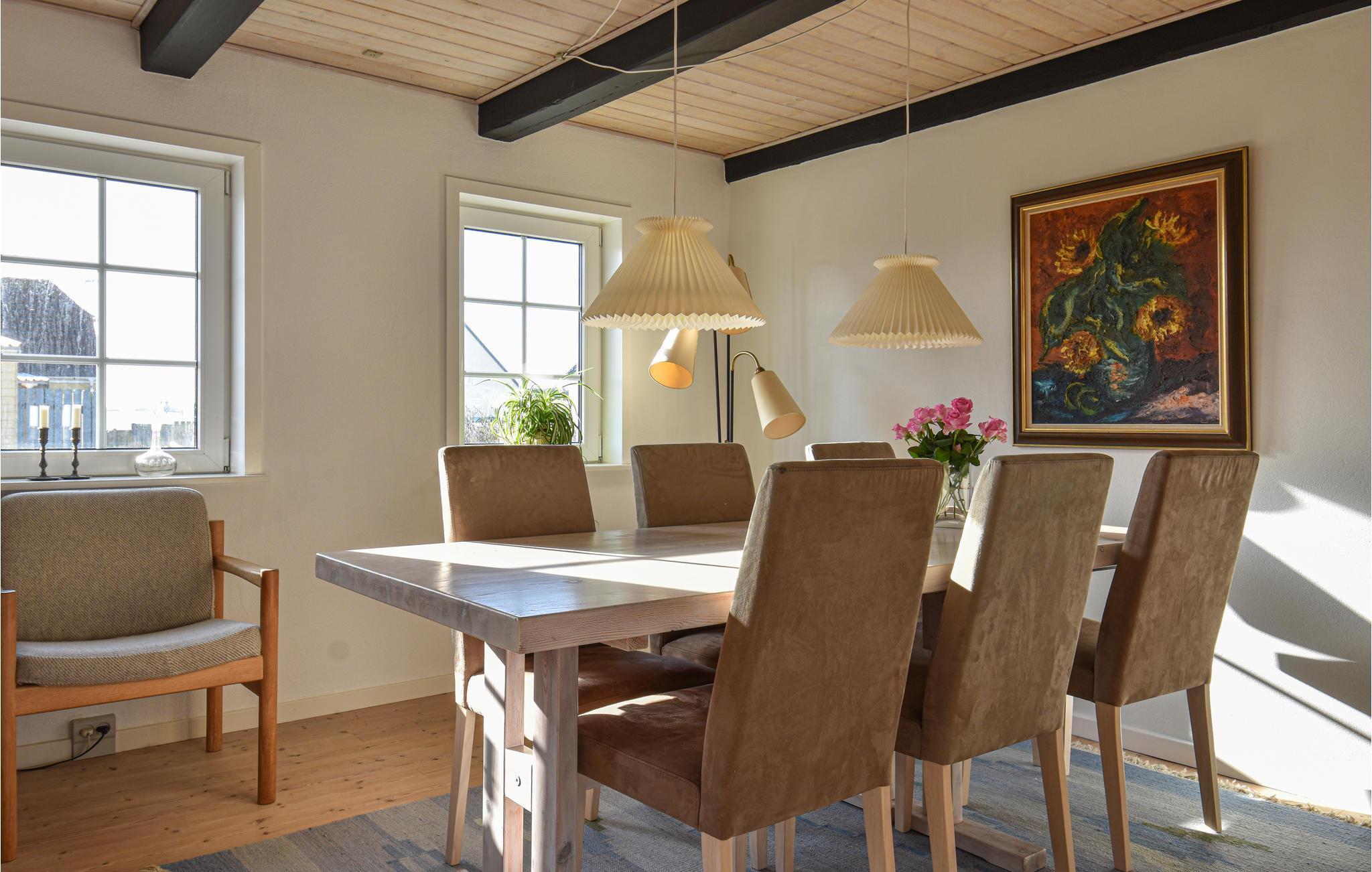 Huset er godt indrettet med en stor, lys havestue, som I nok kommer til at tilbringe det meste af ferien i, da her er lyst, god plads og en utrolig hyggelig atmosfære. Fra havestuen er der adgang til et badeværelse med bruser, en gang med vaskemaskine og tørretumbler samt et soveværelse med dobbeltseng. I hovedhuset er der udover en hyggelig stue med brændeovn, et badeværelse med bruser og et veludstyret køkken samt et soveværelse i stueplan. På 1. sal findes yderligere 2 soveværelser med henholdvis en sovesofa til 2 personer og en dobbeltseng samt 2 ekstra madrasser. Her er også plads til at sidde og læse en god bog eller spille spil og nyde udsigten over klitterne. 1. salen opvarmes med elvarme, mens der er opsat varmepumpe i stuen til opvarmning af stueetagen. Havestuen er uopvarmet, og der er udgang til terrassen samt til den indhegnede have. Boxer TV med en tysk kanal (ZDF).