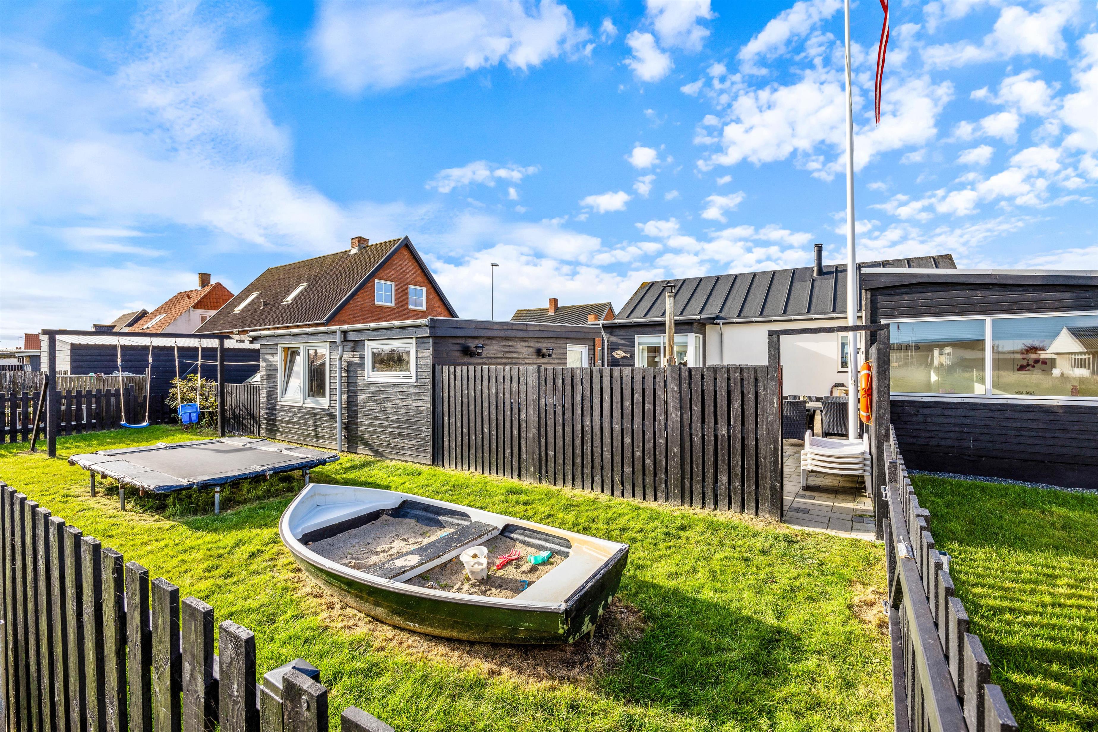I haven er der masser af aktiviteter for børnene og de barnlige sjæle. Her har I både en gynge, trampolin og en sandkasse, som helt sikkert vil glæde jeres børn i timevis.