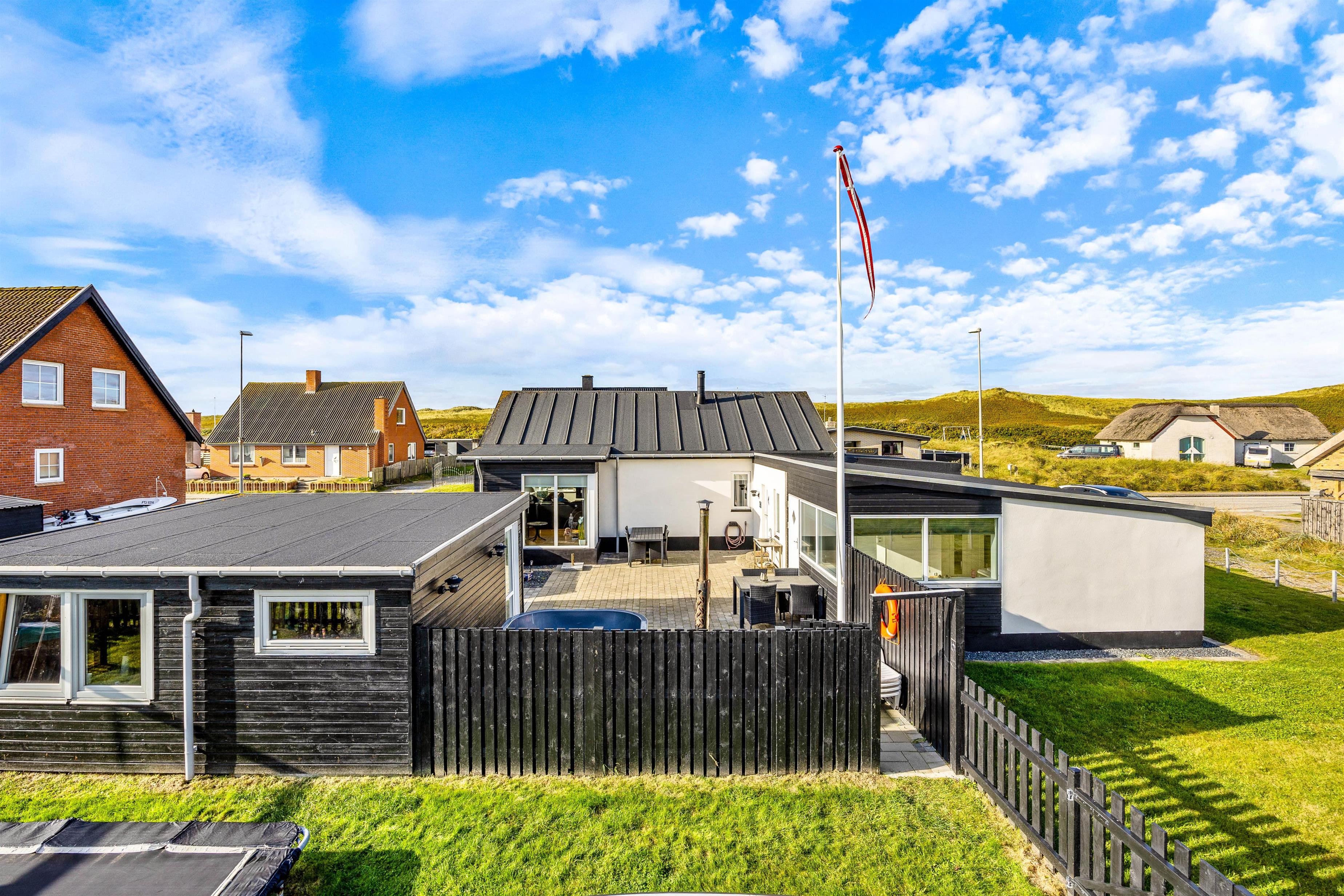 Feriehuset ligger på en 790 kvadratmeter stor grund, hvor der er en delvis stenbelagt, afskærmet og lukket have. På terrassen har I flere forskellige siddepladser, hvor I kan nyde solens varme stråler, når den er fremme. Det er også her, I finder vildmarksbadet, hvor det kan anbefales at nyde et koldt glas vin, mens I nyder varmen og slapper af.