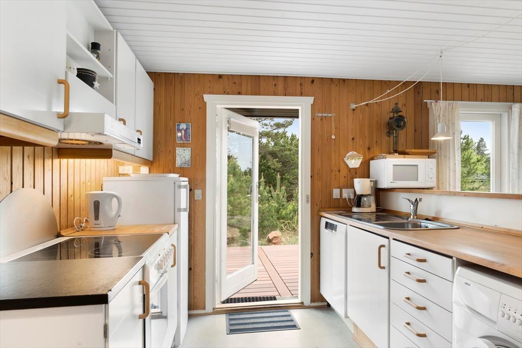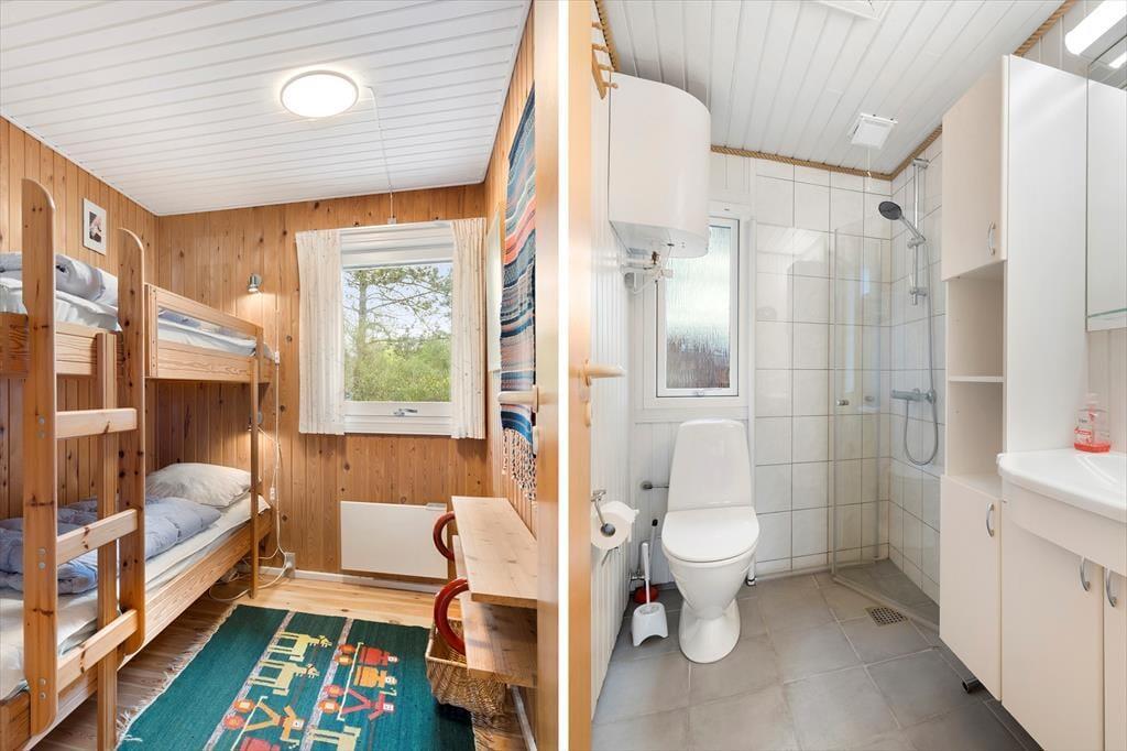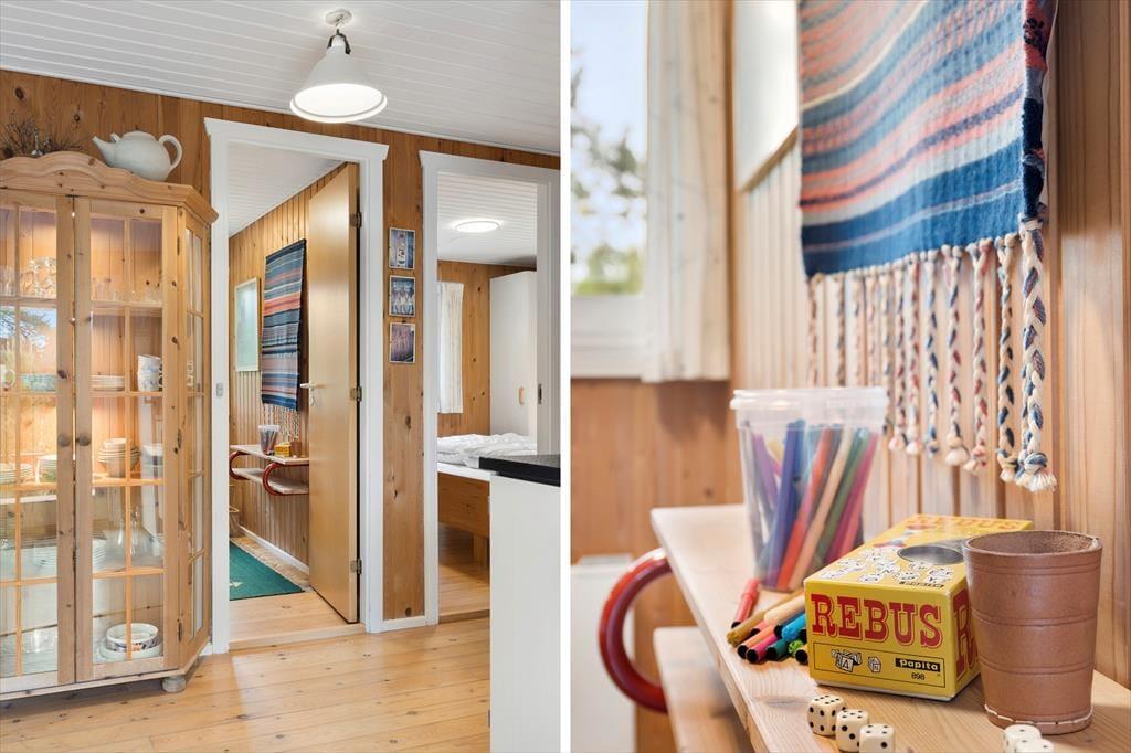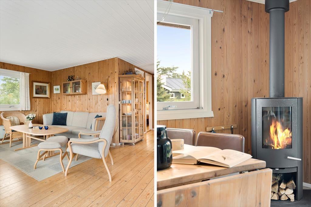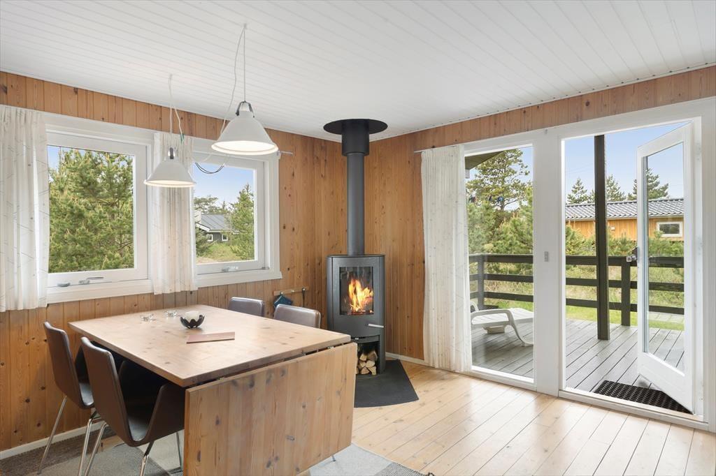 Dette mindre, men flot vedligeholdte sommerhus, har plads til seks overnattende personer, så det både kan bruges til en ferie med børn og til en stille og rolig parferie. Indretningen er varm og hyggelig med pæne og behagelige møbler og en brændeovn, som hurtigt spreder en dejlig atmosfære. Køkkenet er åbent og ligger helt centralt i huset, så man kan sagtens hygge sig sammen, selvom man laver forskellige ting. Værelserne er med h.h.v. dobbeltseng, to enkeltsenge og en køjeseng og badeværelset er med brusekabine. Huset er udstyret med opvaskemaskine, vaskemaskine, internet og varmepumpe, så opholdet bliver så nemt og overskueligt som muligt og man kan prioritere mest muligt tid med familien. Hvis man ønsker at bruge det trådløse internet, skal man selv medbringe pc eller tablet, koden til netværket ligger i den velkomstmappe, man får udleveret ved ankomsten.