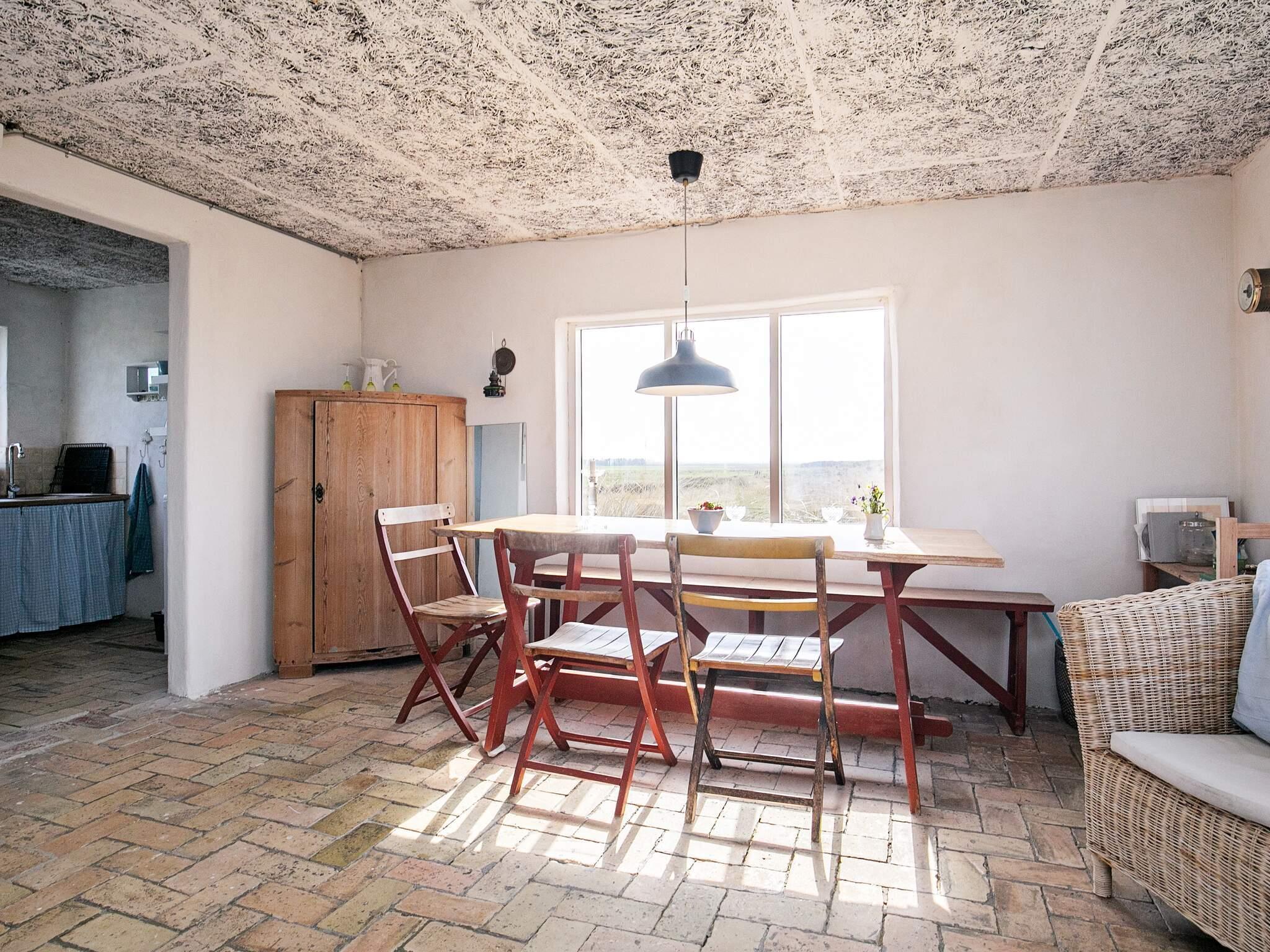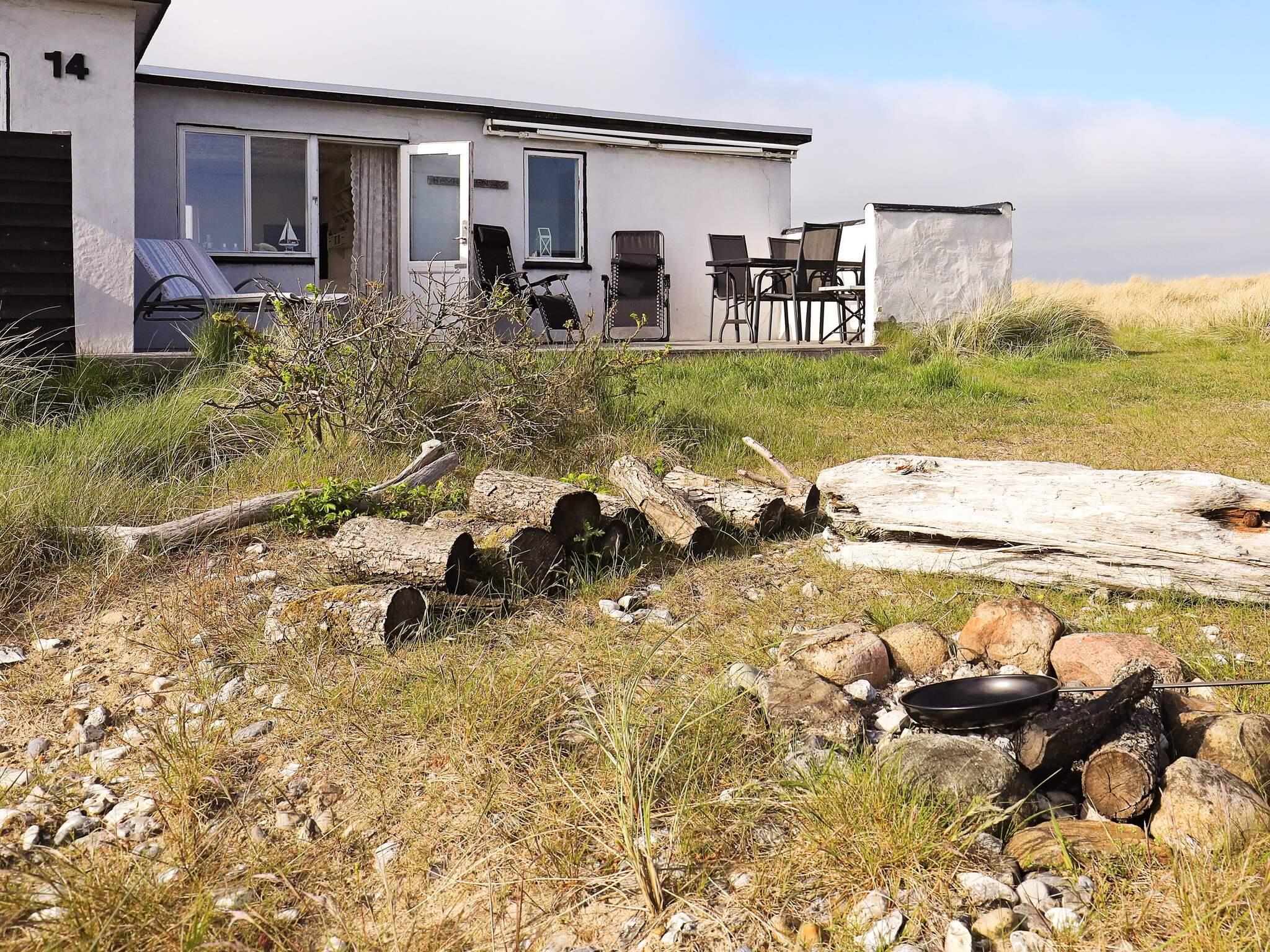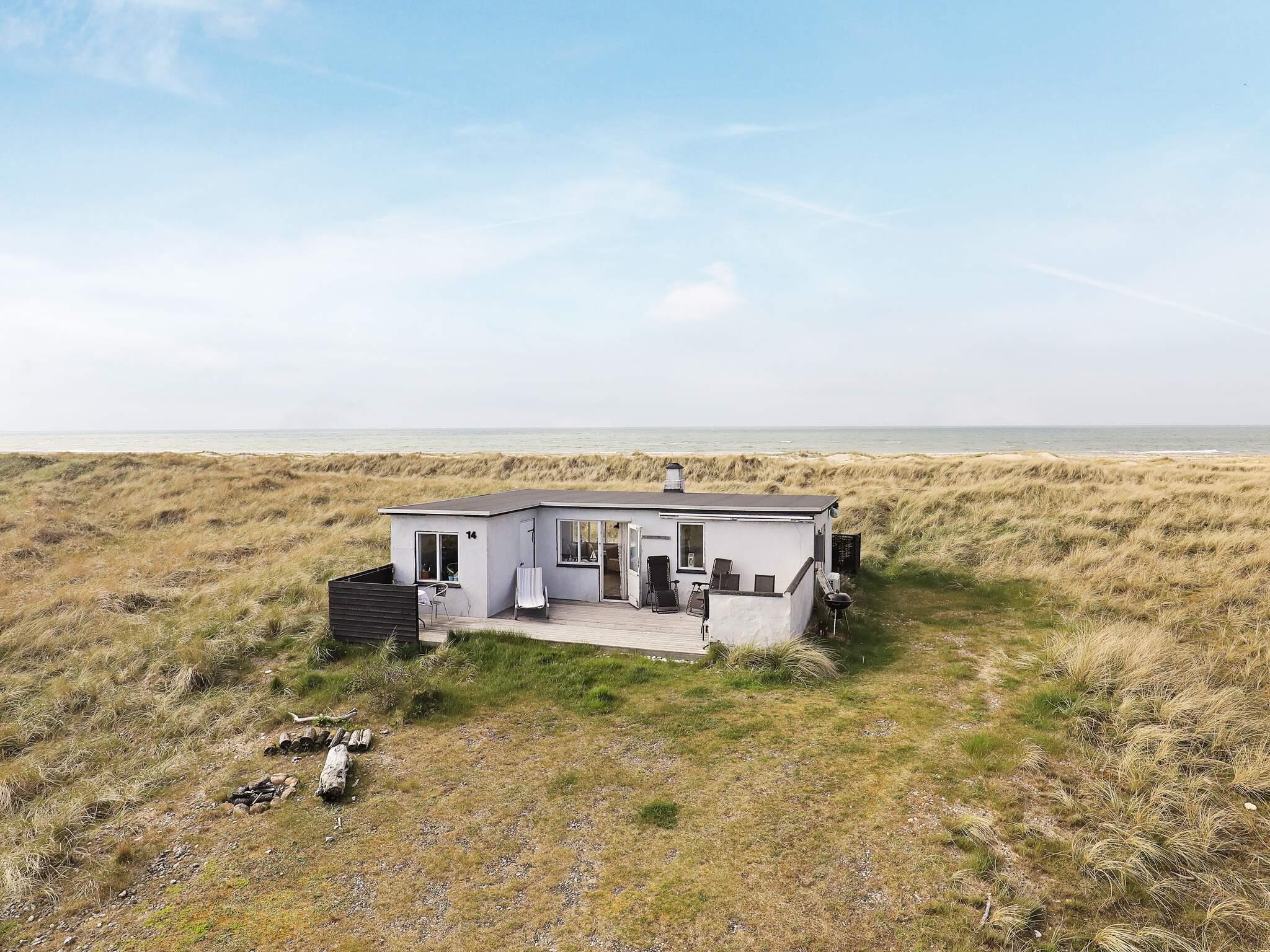 Autentisk sommerhus med sauna beliggende i 1. klitrække med direkte adgang til stranden ved Grønne Strand. Sommerhuset har to soveværelser, stue og køkken med bl.a. keramiske kogeplader og køleskab med lille fryser. Badeværelse med en lille sauna. Der er klimaanlæg/varmepumpe samt brændeovn. Toilet og bad tilgår man fra bagsiden af huset. Huset har en stor sydvendt træterrasse skærmet mod vinden fra havet. Herfra er der en pragtfuld udsigt til et vådområde med rigt fugleliv. I badekåbeafstand når I det skønneste vesterhavsbad. Sommerhuset er for gæster, der værdsætter beliggenhed. Huset er ikke isoleret. Udlejes ikke til ungdomsgrupper.