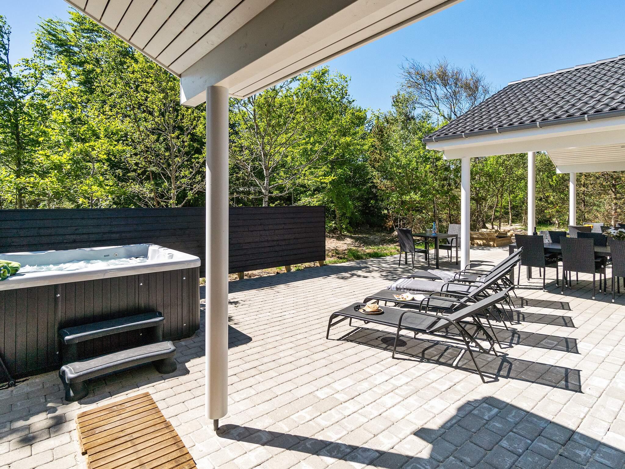 Wellness er tillige at finde udendørs, hvor et varmt dyp kan nydes i sommerhusets udendørs spabad.