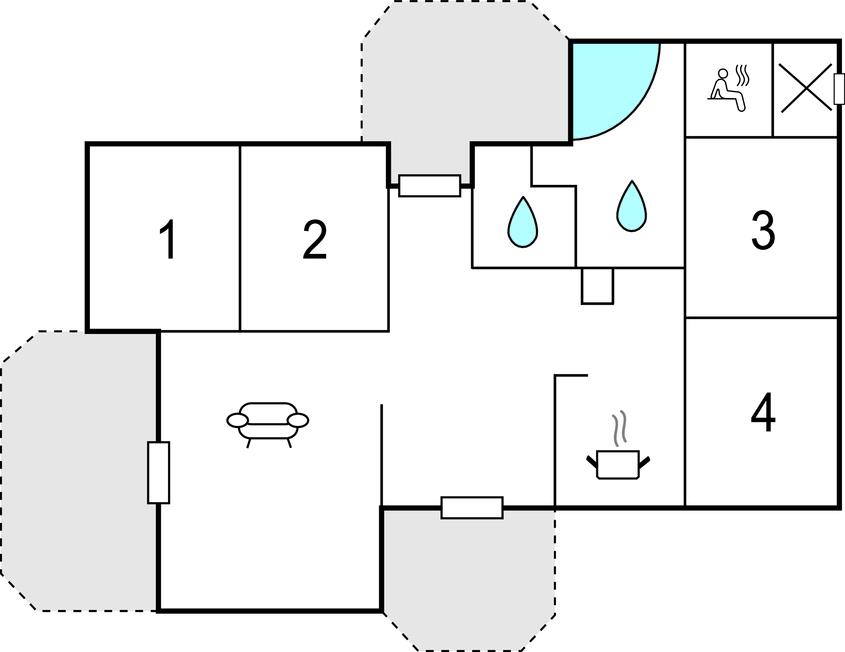 Badeværelse 8m2 (nr. 1) - WC. Varmt og koldt vand. Bruser