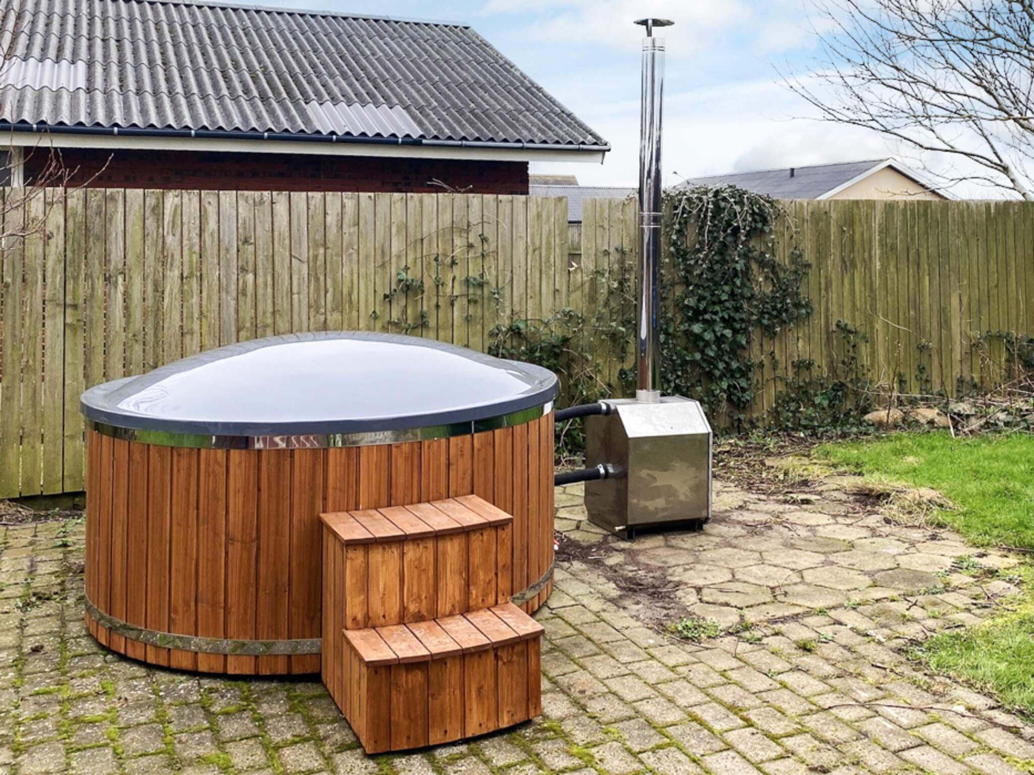 På terrassen finder I desuden husets helt nye vildmarksbad til 6 personer, som er opvarmet med brænde. Brænde kan købes på stedet.