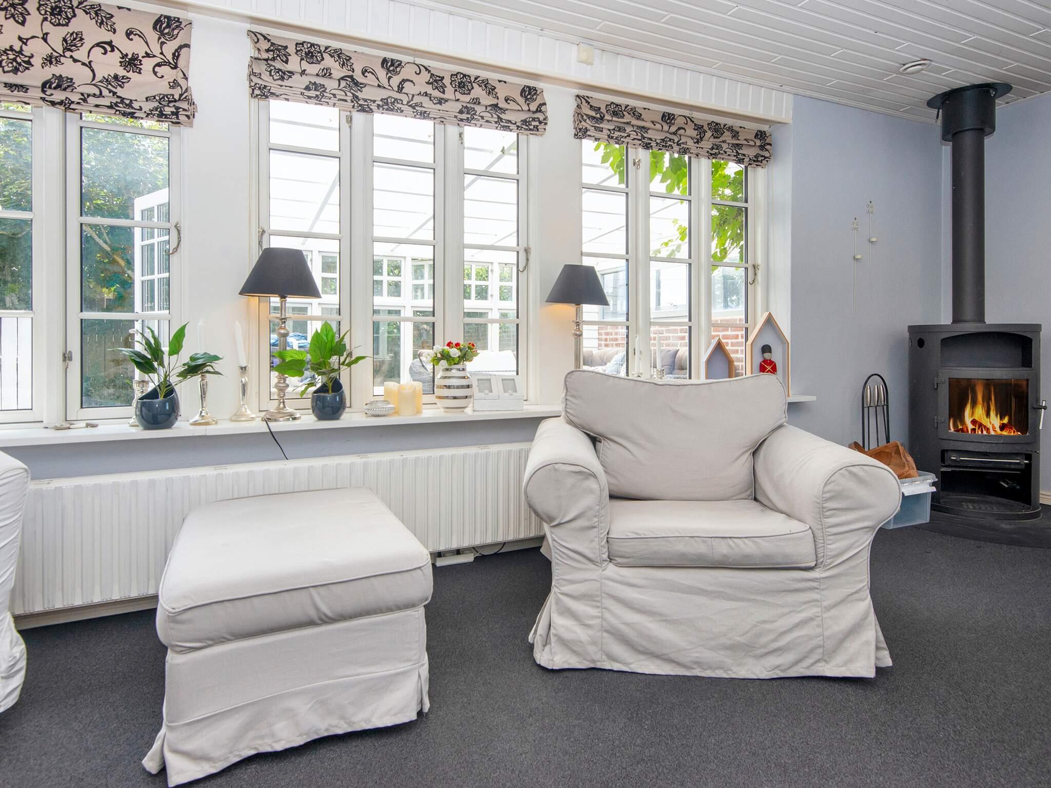 Feriehuset er praktisk indrettet med kombineret stue/køkken/alrum. I stuen er der fladskærms-tv med indbygget Chromecast, hvor du kan streame dine egne tv-tjenester, samt højhastigheds-internet. Derudover er der tyske kanaler via satellit. Der er brændeovn til kølige sommeraftener eller regnfulde efterårsaftener.