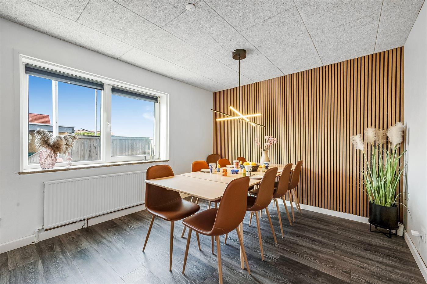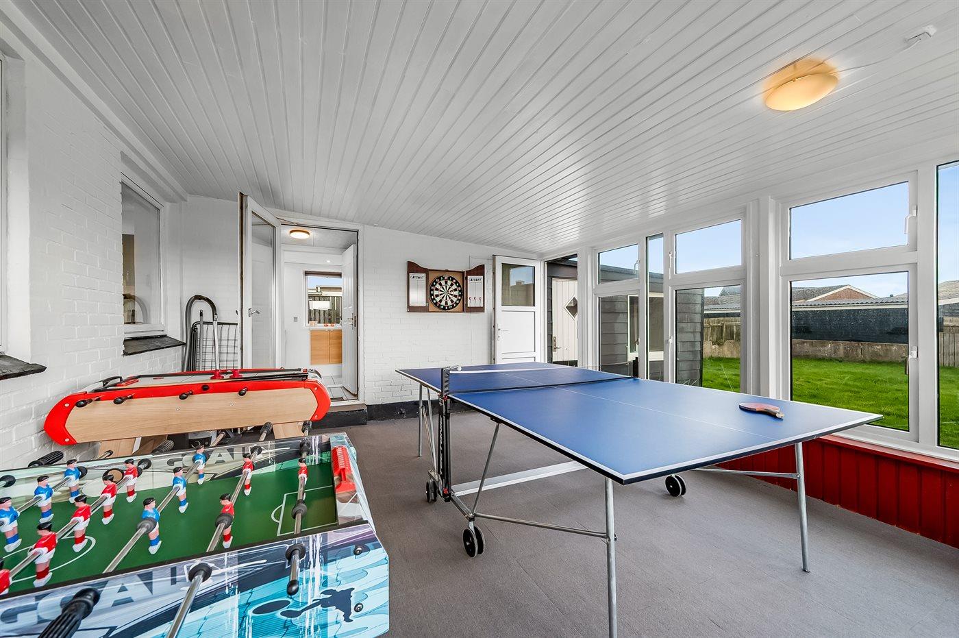 Oplev den autentiske fiskerstemning, som Thyborøn byder på, i dette feriehus, hvor der både er plads og aktiviteter til hele familien. Med det store aktivitetsrum kan selv en lang regnvejrsdag være underholdende. Thyborøn byder også på masser af attraktioner, som Sneglehuset, Jyllands Akvariet eller få en tur på Puch Maxi.