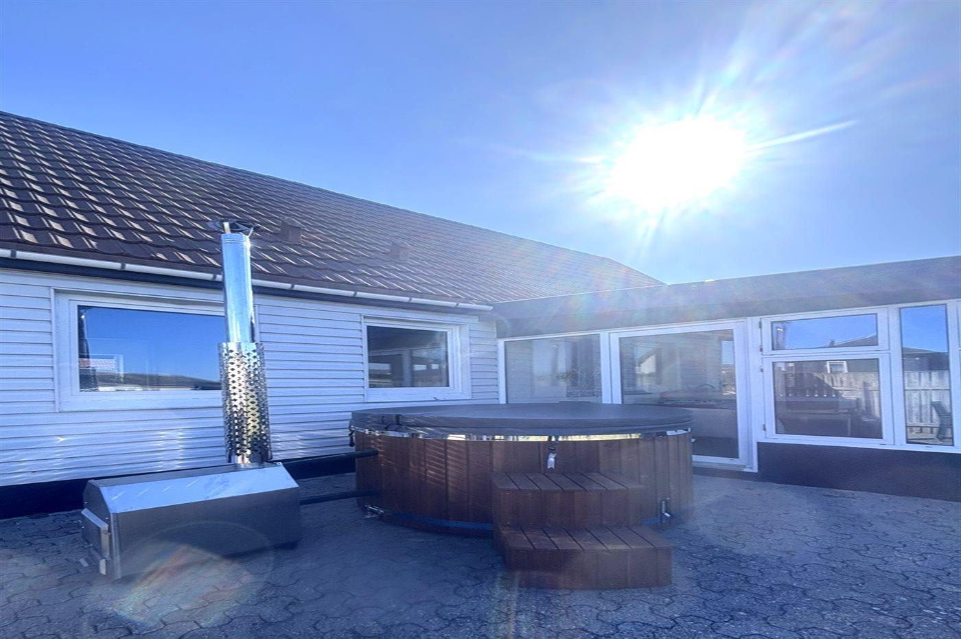 Charmerende feriehus i Thyborøn med aktivitetsrum og spa til hele familien.