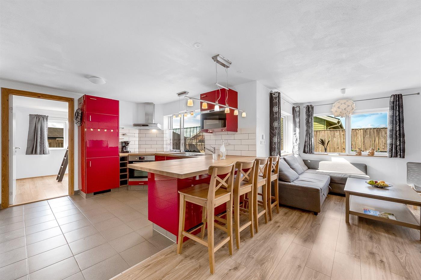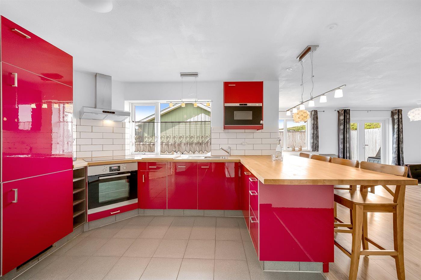 Køkkenet er udstyret med 1 køleskab. Der er 4 keramiske kogeplader, varmluftovn, mikrobølgeovn samt opvaskemaskine.