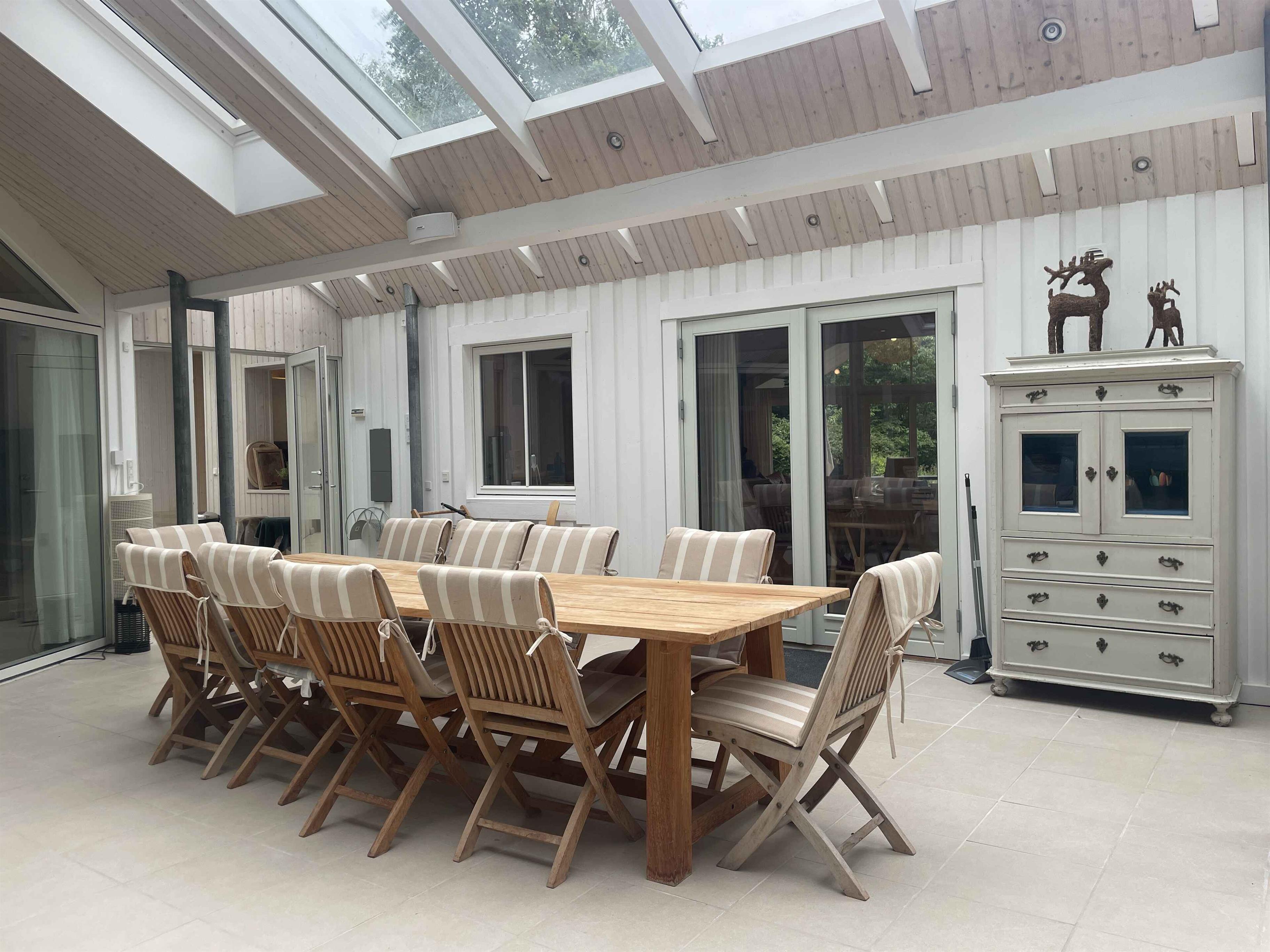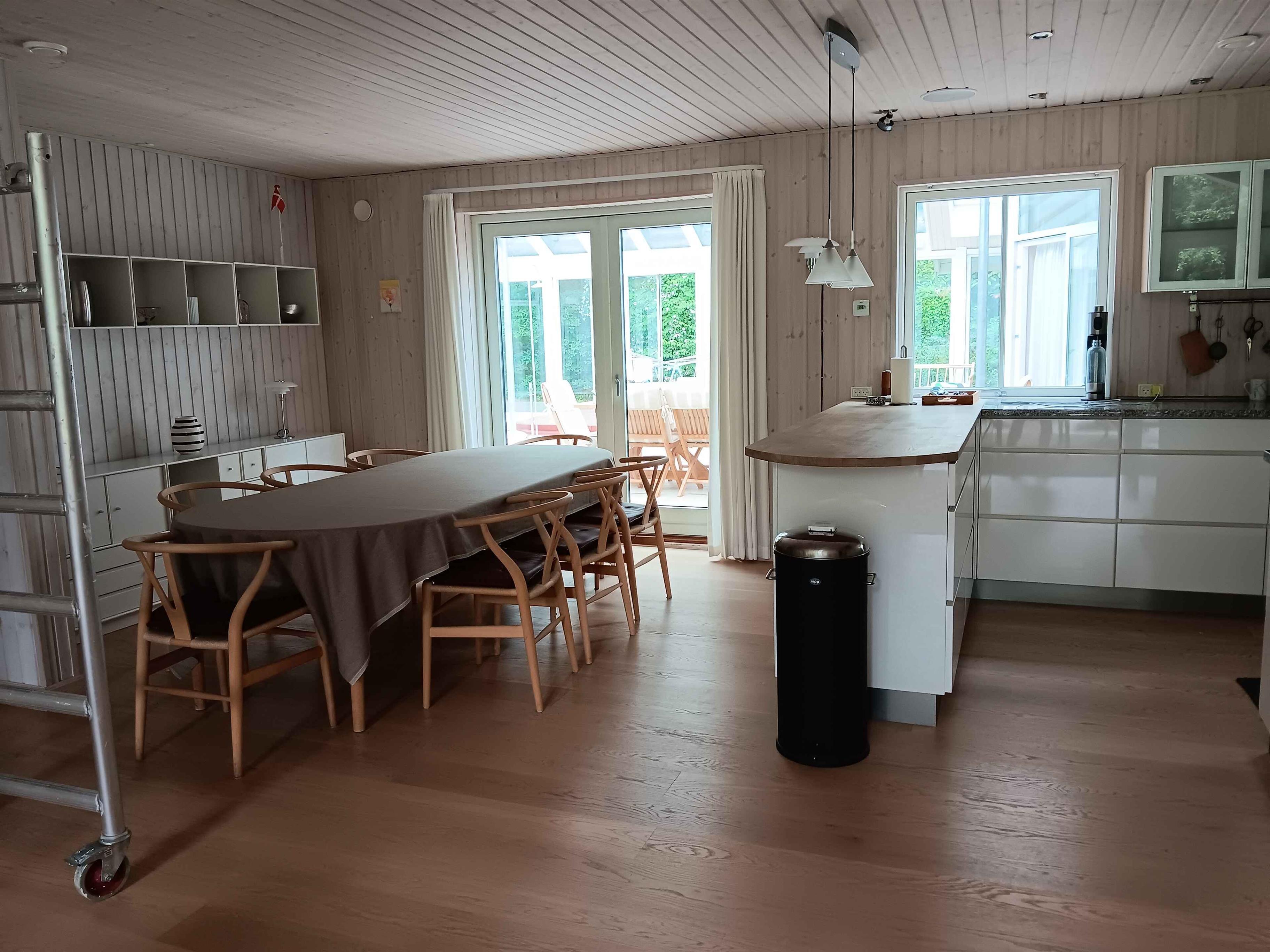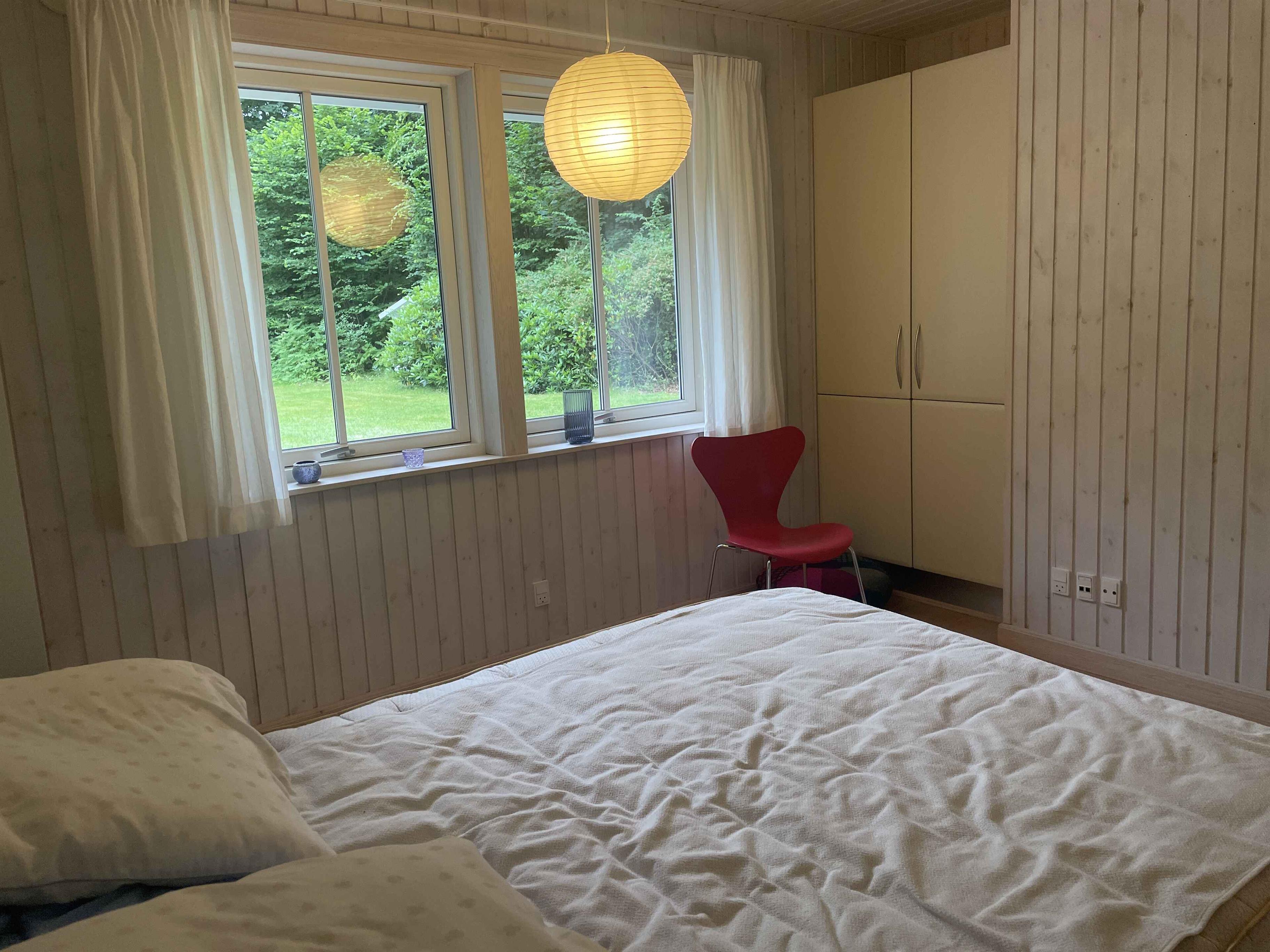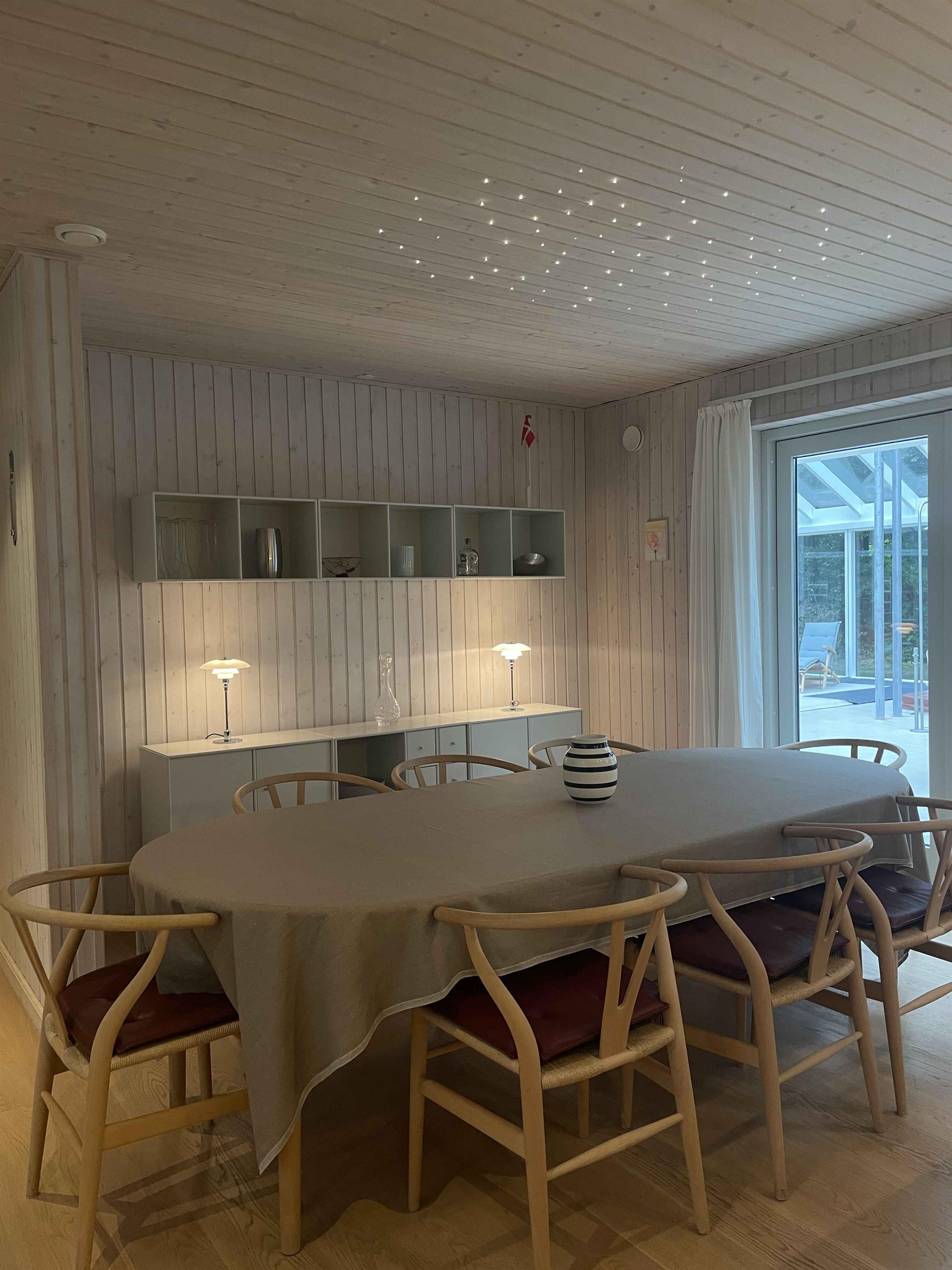 Et dejligt, rummeligt sommerhus med plads til nærvær og afslapning. De 300 m² rummer seks separate soveværelser med i alt seks sovepladser, hvilket gør huset oplagt til to familier, der rejser sammen. Her er tænkt på ro, hygge og samvær frem for skærme og elektronik. Huset ligger i et stille område med fredelige omgivelser og god plads både inde og ude. Den store terrasse, grillplads og den velholdte have indbyder til udendørsliv og lange sommeraftener. En rummelig udestue giver mulighed for at forlænge dagen, også når vejret er skiftende. Indendørs er huset fuldt møbleret med alt, hvad man har brug for. Et stort spisebord samler gæsterne til fælles måltider, mens sofaer og loungestole giver plads til afslapning. Der er tv-rum, wifi og klassiske brætspil til de stille aftener. Området omkring huset er rigt på naturoplevelser. Tæt på finder du skove, stier og en sø, der indbyder til gåture og udsigtspauser. Kysten ligger blot 6 km væk med flere hyggelige strande og småbyer, der er perfekte til en dagsudflugt eller en is i solen. Det er et oplagt sted til ferie, hvor tempoet sænkes, og der er tid til at være sammen. Uanset om du vil udforske naturen eller bare nyde roen hjemme, danner huset og omgivelserne en ideel ramme om en afslappet og indholdsrig ferie. Obs, udlejes ikke til erhversmæssigt brug.