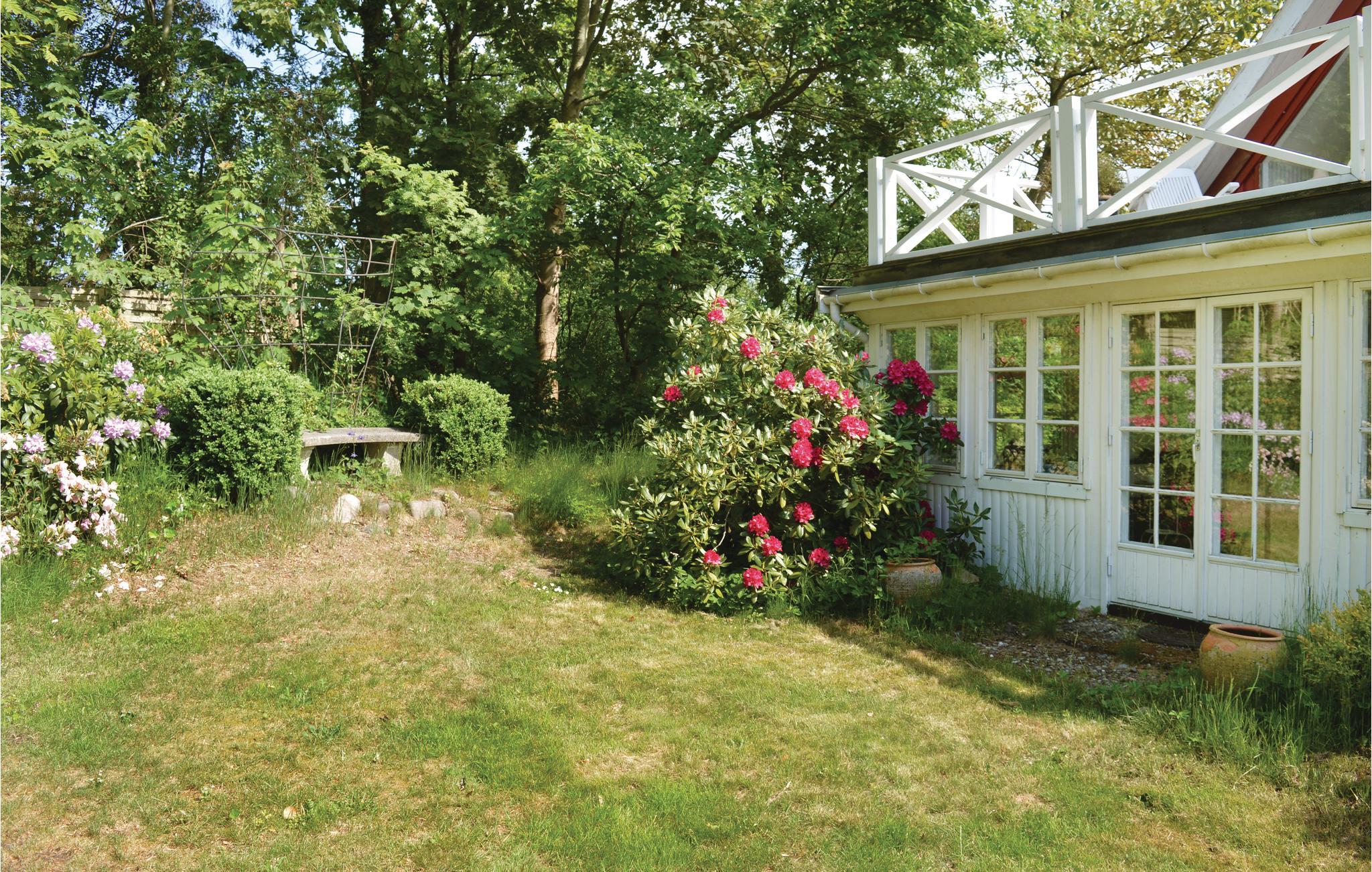 Hyggeligt stråtækt feriehus med smuk have, tæt på strand og Gilleleje, perfekt til en afslappende ferie i naturskønne omgivelser.