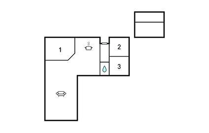 Badeværelse (nr. 1) - WC. Varmt og koldt vand. Bruser