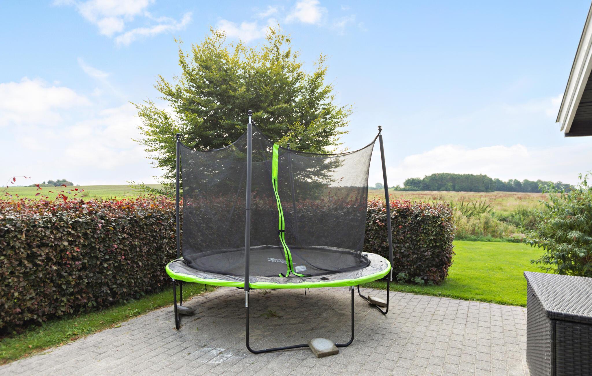 På den store terrasse kan I tænde op i grillen og forberede den store middag under parasollen. I mellemtiden kan børnene hygge sig på trampolinen. I kan afslutte aftenen foran bålstedet og grille skumfiduser eller snobrød.