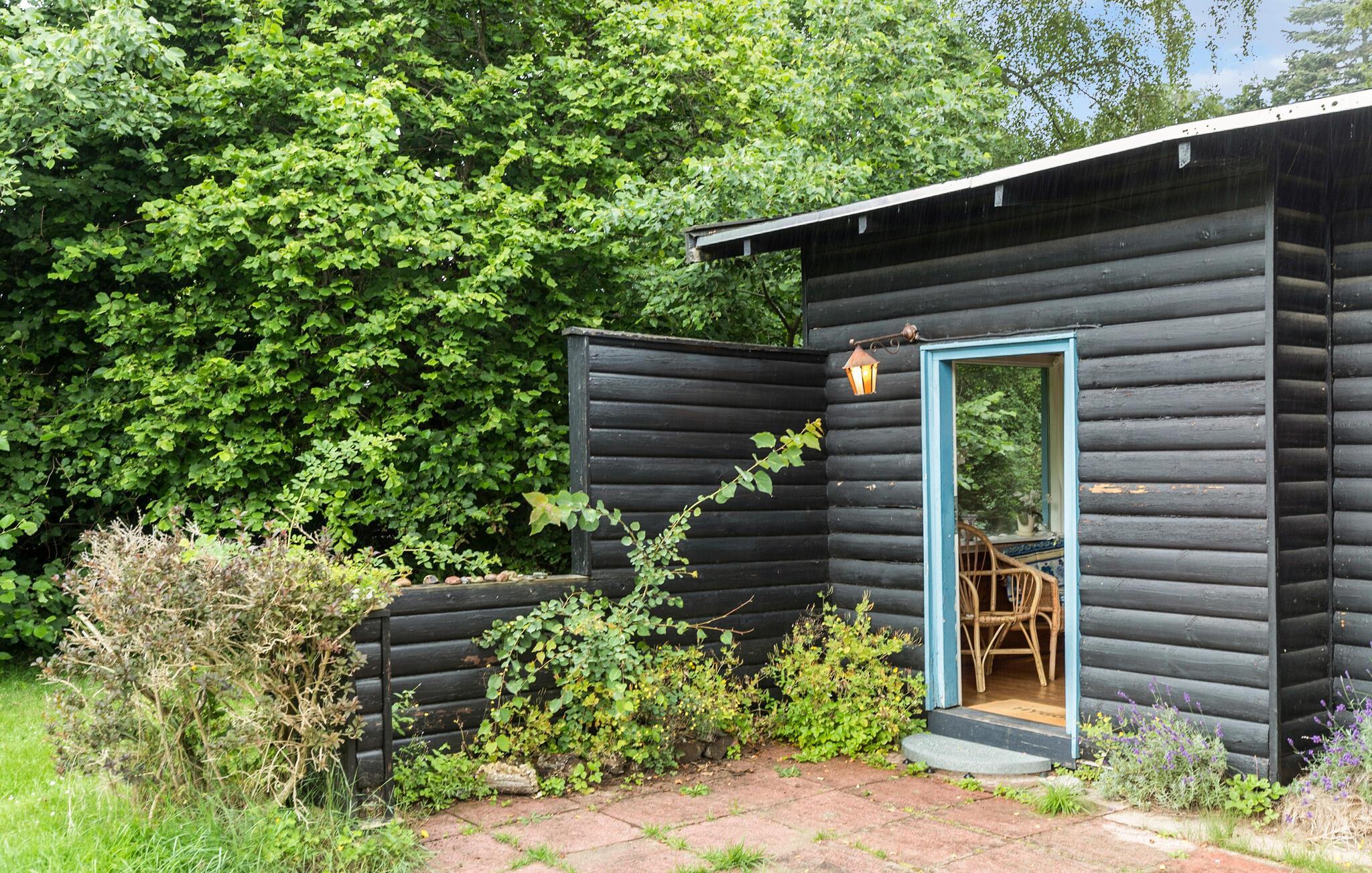 Hyggeligt træhus nær Tinkerup Strand med to terrasser og brændeovn, perfekt til en afslappende familieferie i naturskønne omgivelser.