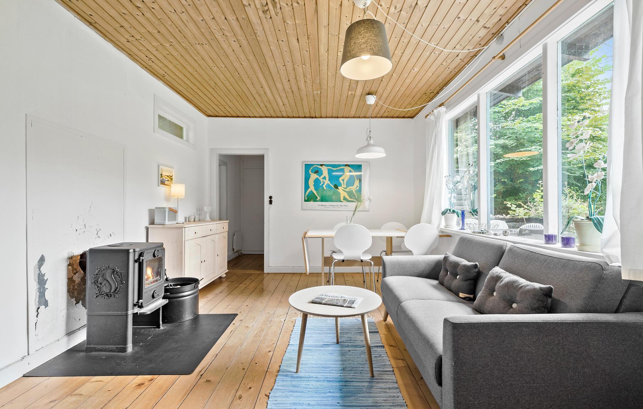 Velkommen til dette hyggelige hus, der ligger i idylliske omgivelser i et fredeligt boligområde kun få minutters gang fra stranden ved Kattegat. Med sin funktionelle indretning og basale komfort er huset det oplagte valg for jer, der prioriterer beliggenhed og charme over komfort og luksus på ferien. Indvendigt emmer det af hygge med varme træpaneler, dejlige lysindfald gennem de mange vinduer og en brændeovn, ved hvis varme I kan hygge jer lidt ekstra, selv hvis vejret skulle bide lidt fra sig.