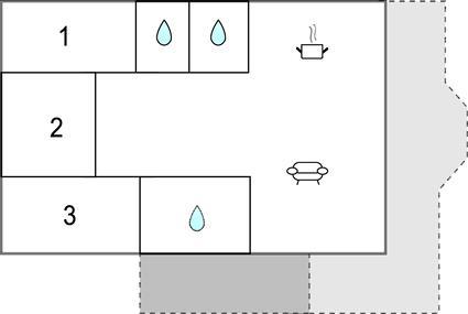 Badeværelse (nr. 1) - WC. Varmt og koldt vand. Bruser