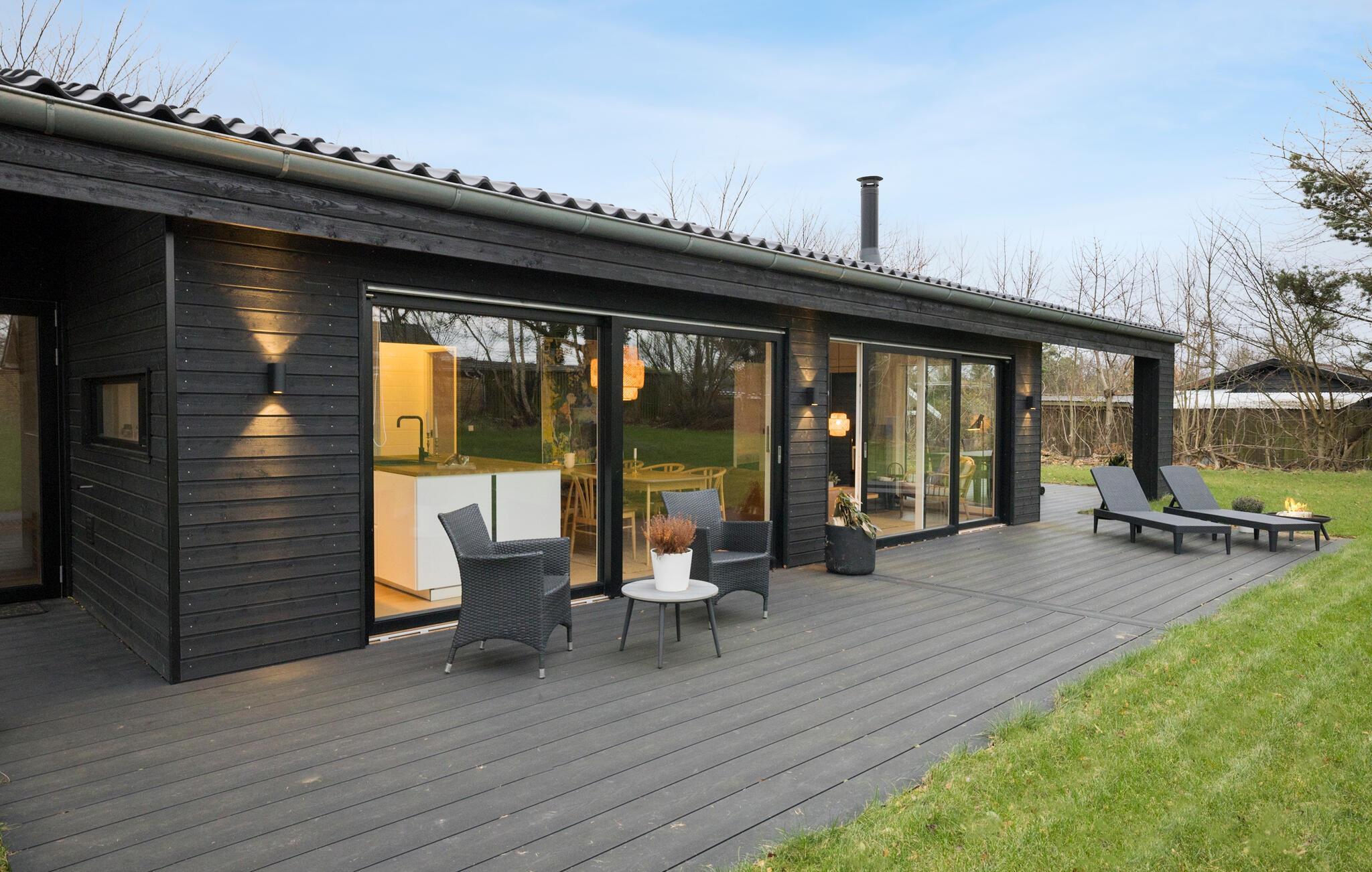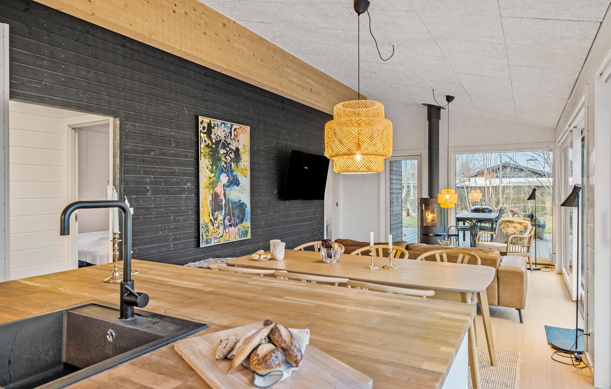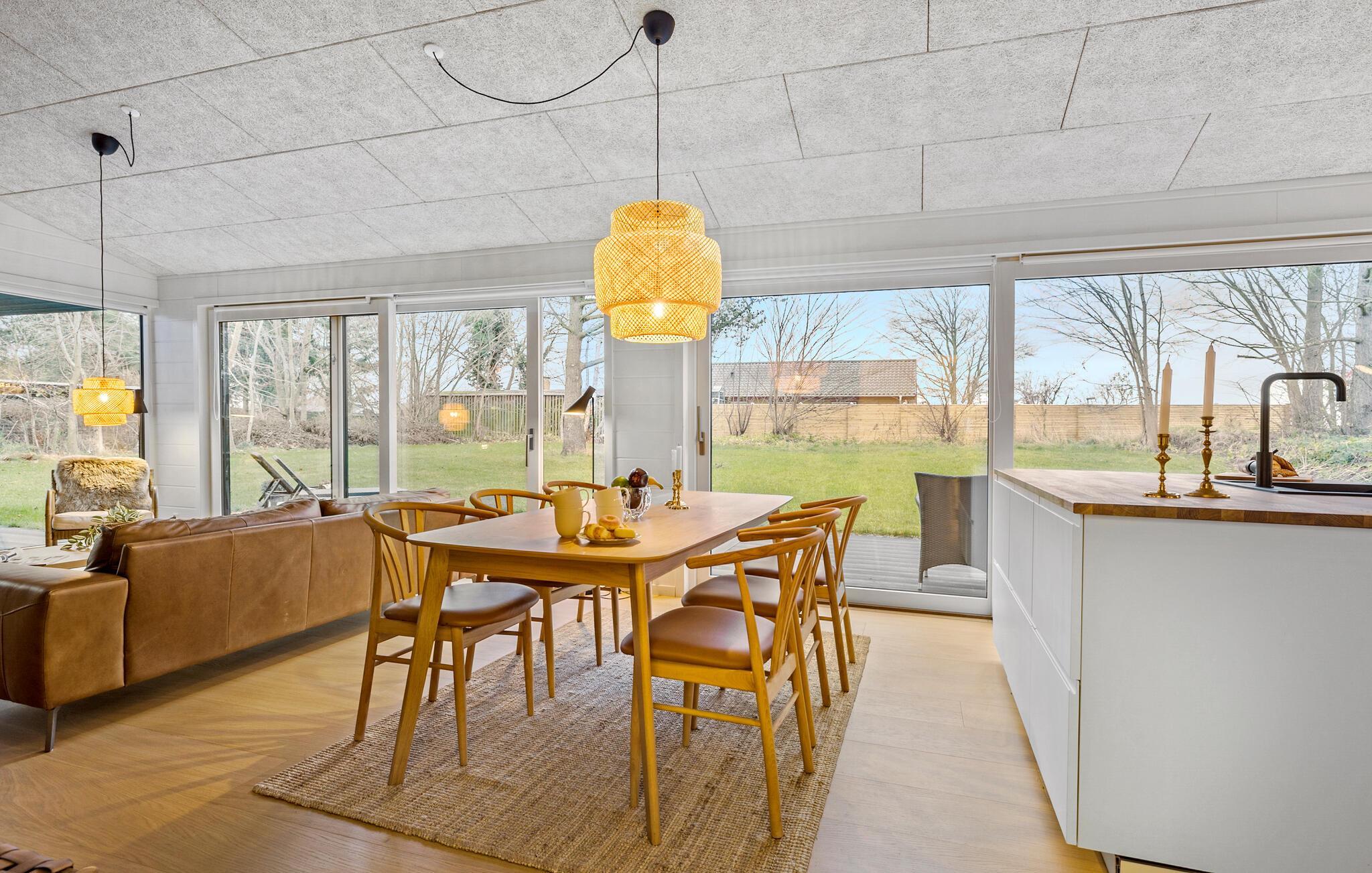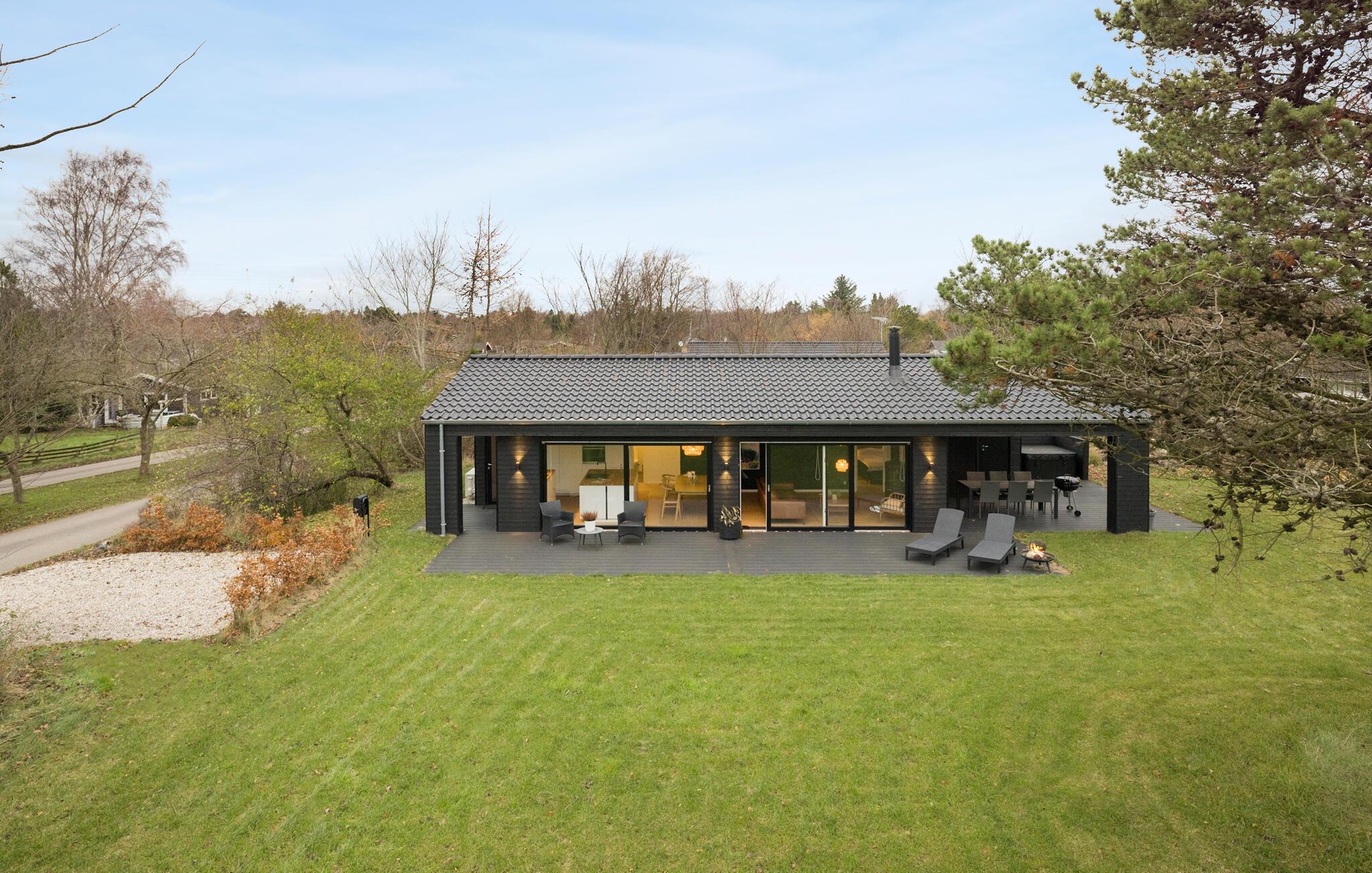 Kom ind og bliv overrasket over den smagfulde indretning i dette moderne sommerhus. Fejr jeres måltider i den åbne spiseplads med udsigt til det grønne og forkæl jer selv med harmoniske aftener ved pejsen i den indbydende stue. Fald ned i de behagelige lænestole og hel jer til en god bog, som I ikke finder tid til i jeres hverdag.