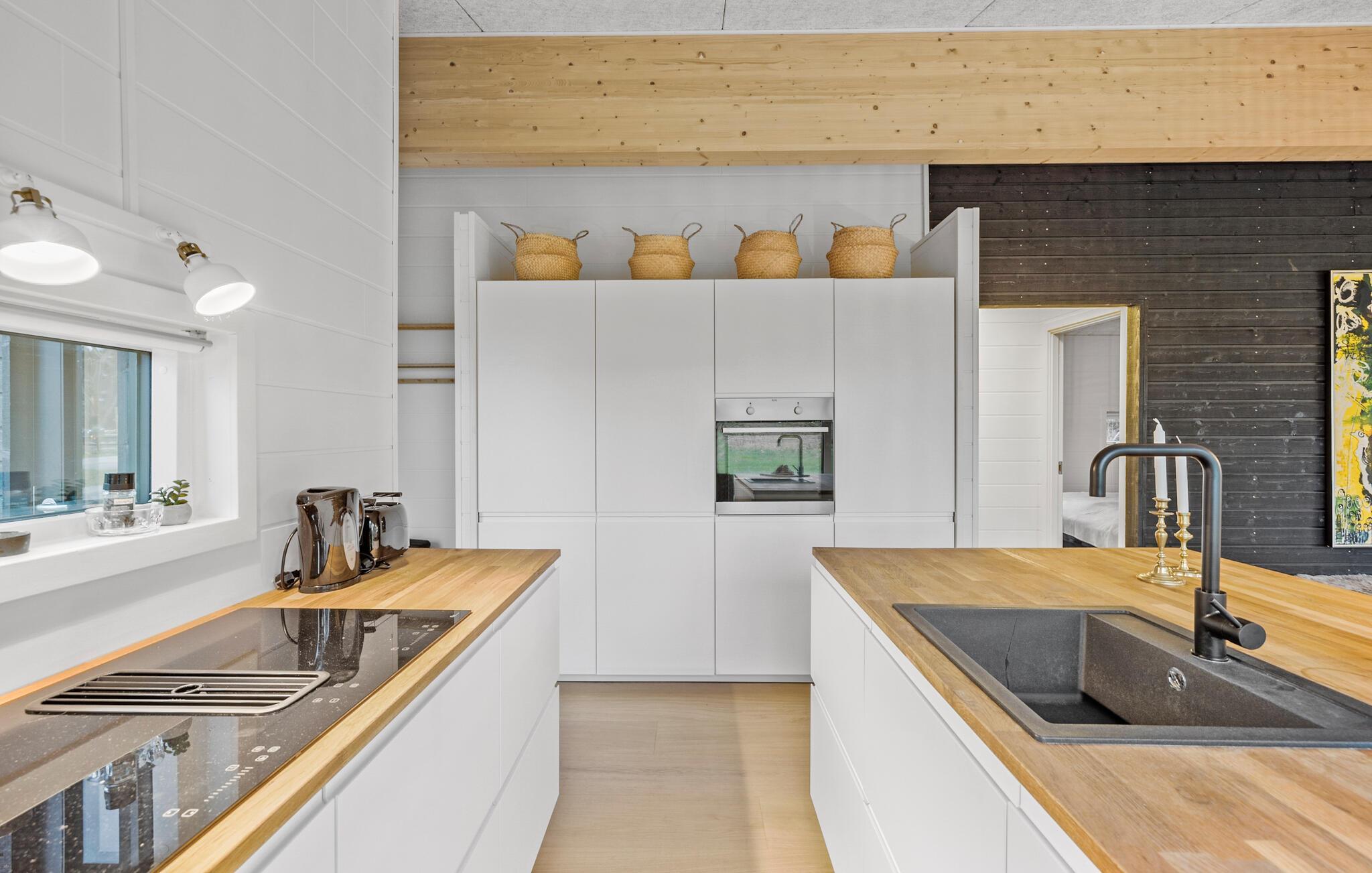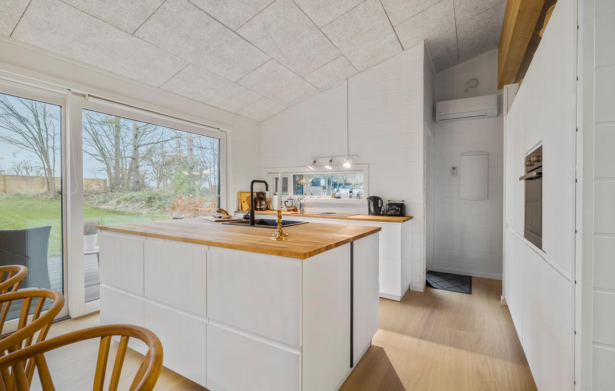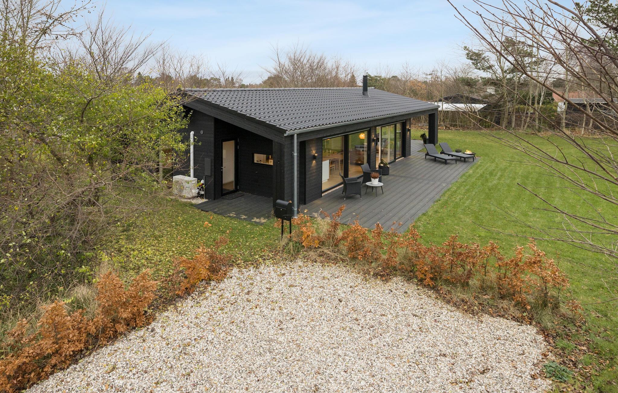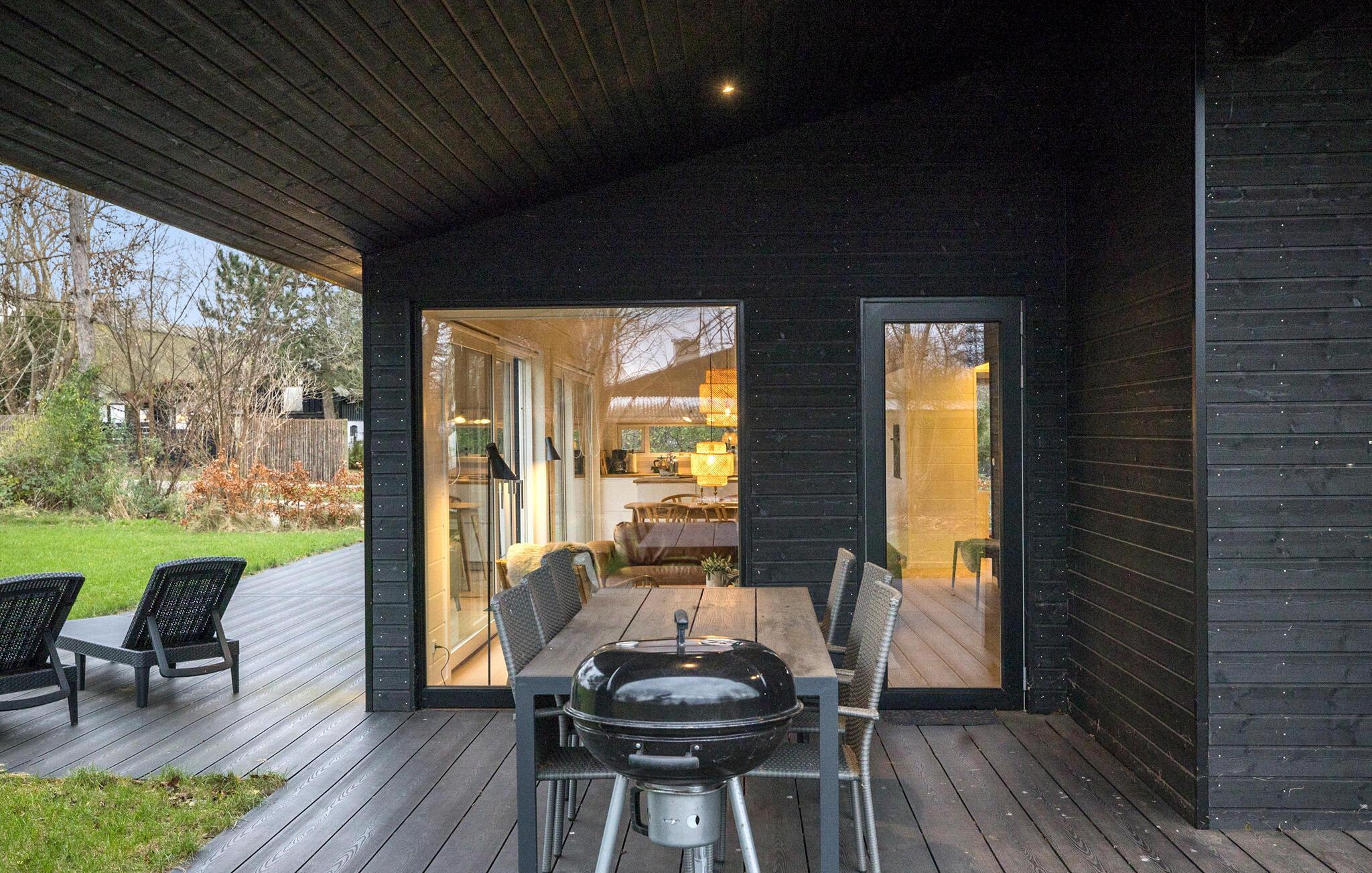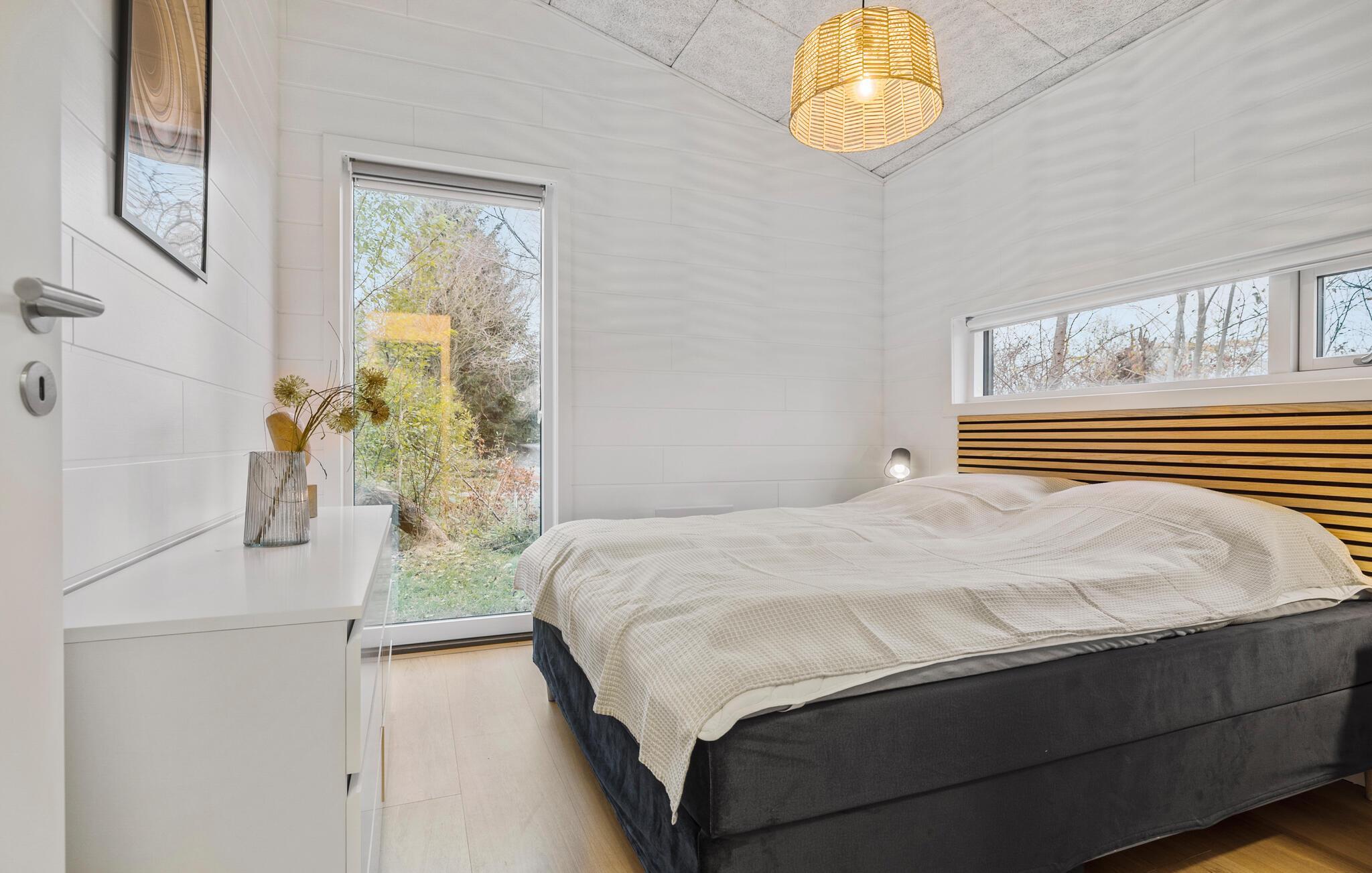 Kom ind og bliv overrasket over den smagfulde indretning i dette moderne sommerhus. Fejr jeres måltider i den åbne spiseplads med udsigt til det grønne og forkæl jer selv med harmoniske aftener ved pejsen i den indbydende stue. Fald ned i de behagelige lænestole og hel jer til en god bog, som I ikke finder tid til i jeres hverdag.