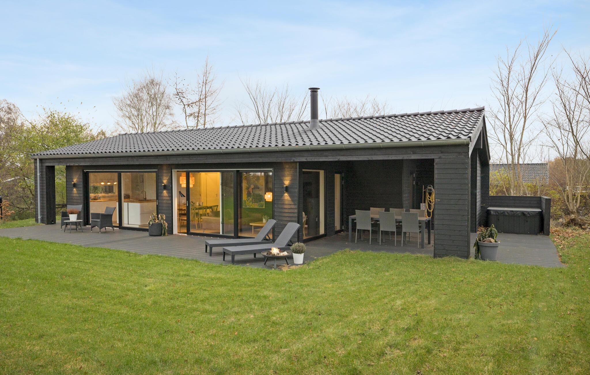 Hyggeligt, moderne sommerhus nær Tinkerup Strand med pejs, have, grill og spabad til afslapning.