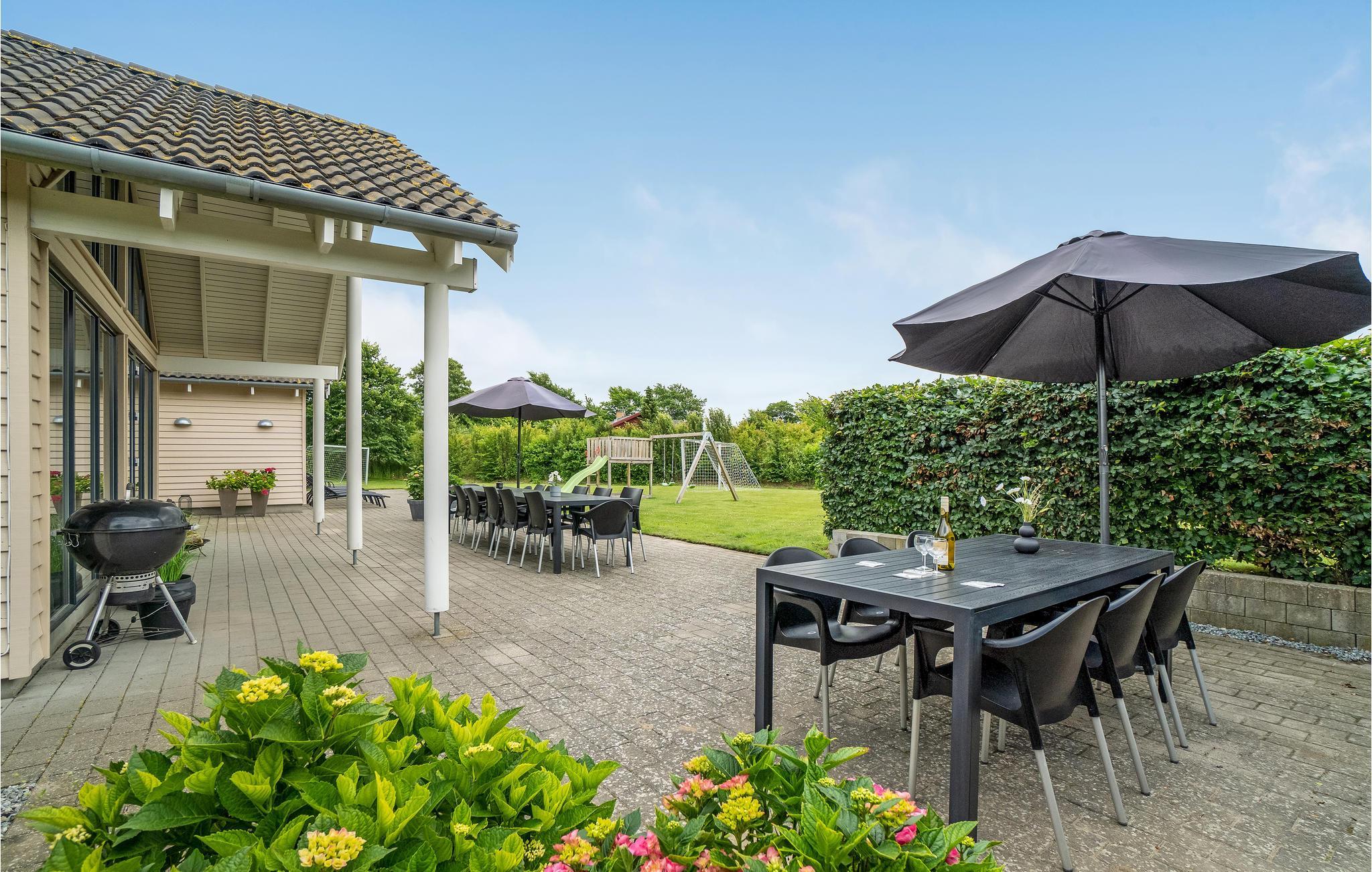 Sommerhuset har sit eget "vandland", hvor poolen byder på romersk trappe, modstrømsanlæg og vandrutsjebane. Svømmeturen kan suppleres med en tur i den skønne spa med plads til 6 personer eller med en tur i saunaen. I haven er der endvidere fodboldmål og klatretårn, så børn og barnlige sjæle kommer aldrig til at kede sig her i huset.