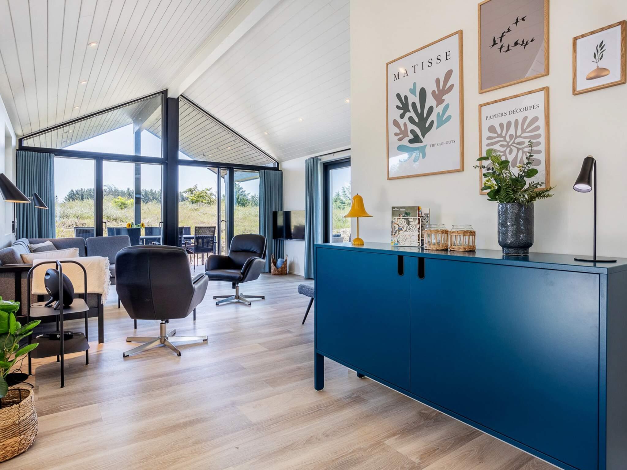 Kvalitetssommerhus med vildmarksbad, sauna og skønt terrassemiljø ved Tornby Strand. Her er der virkelig mulighed for at få en fantastisk og afslappet ferie uanset årstid. Sommerhuset er beliggende på en stor, kuperet naturgrund med hyggelige lækroge, hvor I kan sidde i ro og nyde den smukke natur. Huset er moderne og smagfuldt indrettet med rummelig entre med plads til overtøj og fodtøj samt vaskemaskine og tørretumbler og herfra er der adgang til et af husets badeværelser. Fra entreen går I direkte ind i et meget stort og veludstyret køkken/alrum med store vinduespartier, som sikrer optimalt sollys gennem hele dagen, og direkte udgang til huset terrassemiljø, hvor der er havemøbler med hynder. Huset har fire gode værelser med skabsplads der ligger godt placeret.