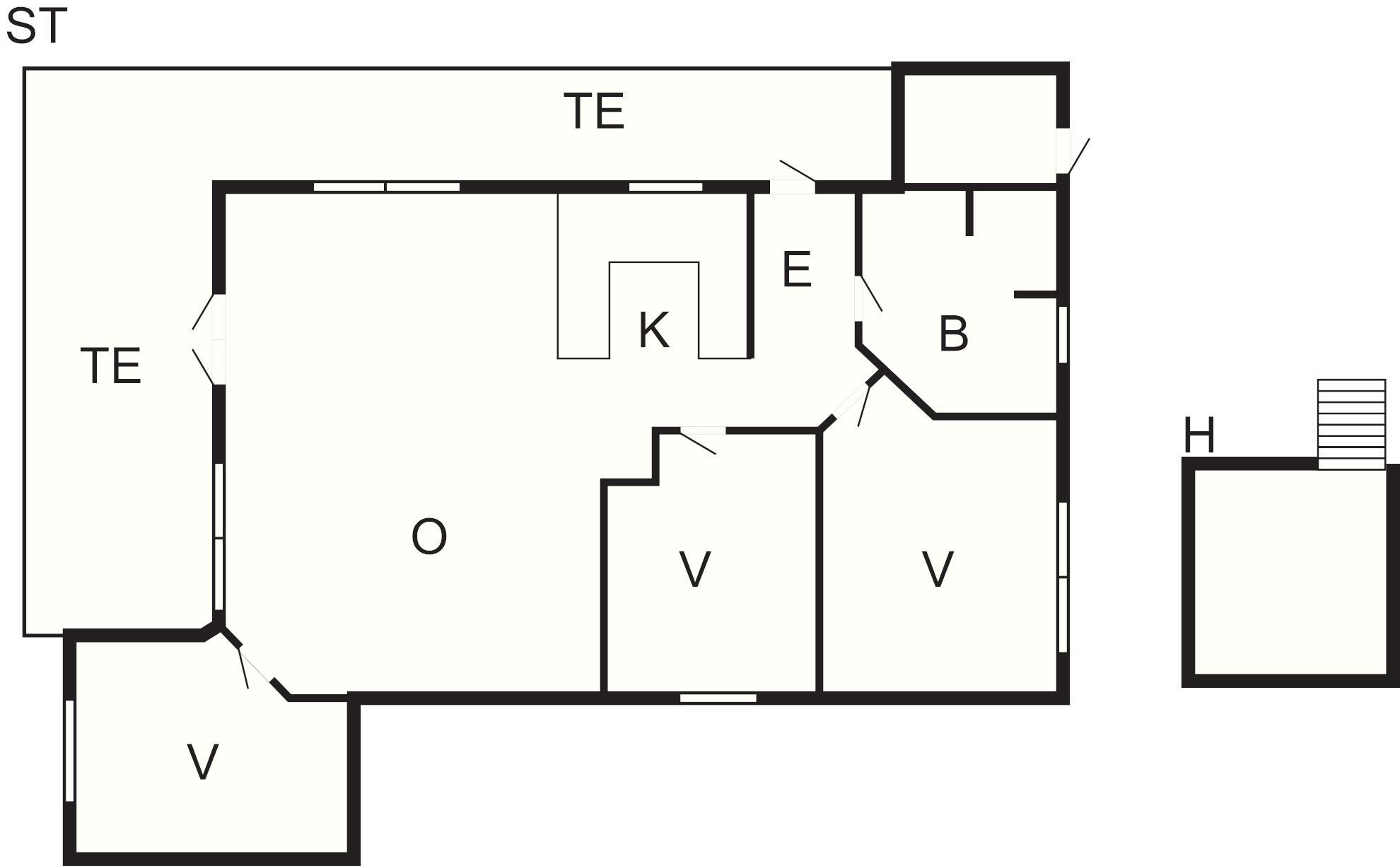Midtpunktet i sommerhuset er det store køkken-alrum, hvor køkken og stue er samlet til ét stort, lyst rum. Det veludstyrede køkken byder på god plads til socialt samvær under madlavningen og mulighed for at nyde aftensmaden med hele familien. Rammerne er perfekte til en ferie med plads til afslapning, sjov og spil. TV'et byder på et udvalg af danske og tyske kanaler.