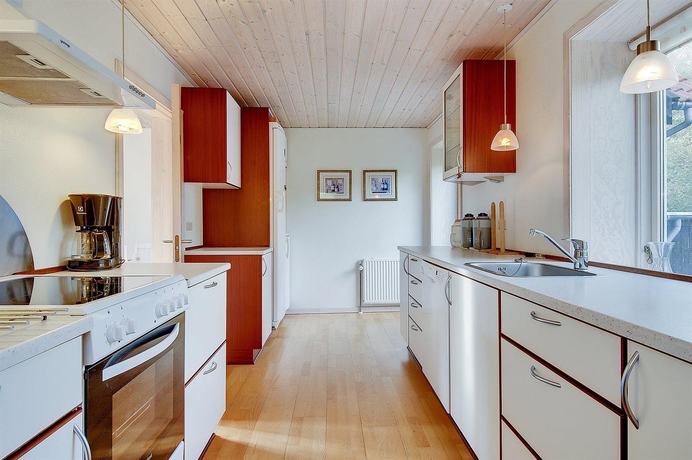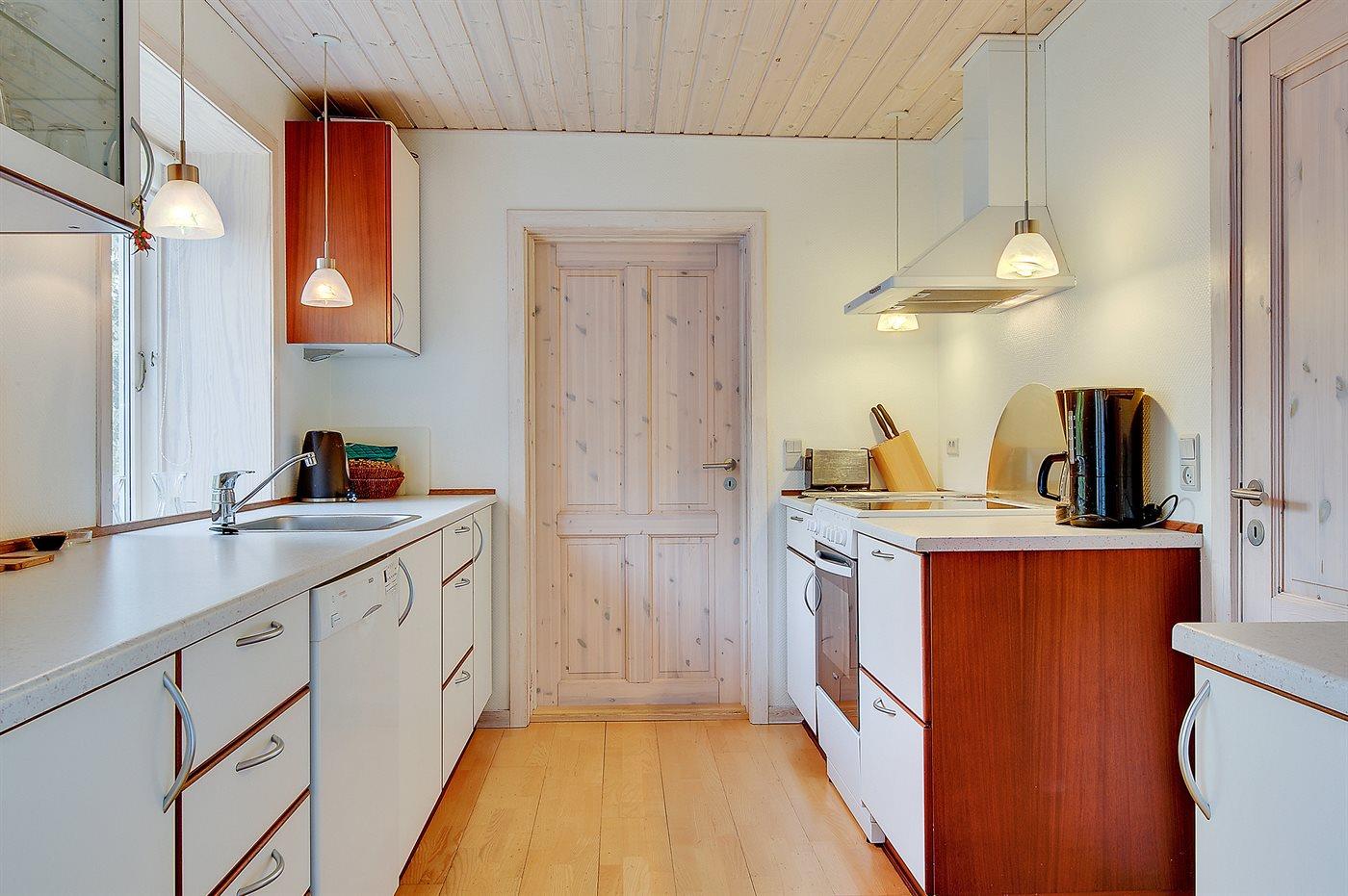 Køkkenet er udstyret med 1 køleskab. Der er 4 keramiske kogeplader, varmluftovn, mikrobølgeovn samt opvaskemaskine.