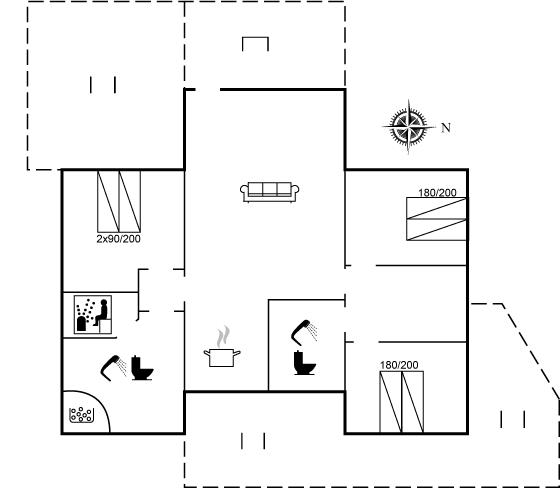 Sommerhuset egner sig til 8 personer samt 1 barn op til 3 år. Der er i alt 3 soveværelser. Sovepladserne fordeler sig på: 4 sovepladser i dobbeltsenge og 2 sovepladser i enkeltsenge. Derudover er der 2 sovepladser på madrasser på husets hyggelige hems som kun er egnet til større børn (4-15 år). Der er 1 stk. barneseng til rådighed. Det er tilladt at medbringe 1 husdyr.