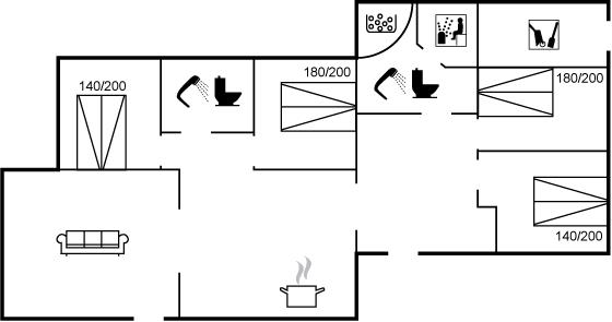 Der er fire soveværelser med i alt otte sovepladser i dobbeltsenge samt to sovepladser på hemsen, dvs. bedst egnet til større børn. Barneseng og højstol til rådighed.
