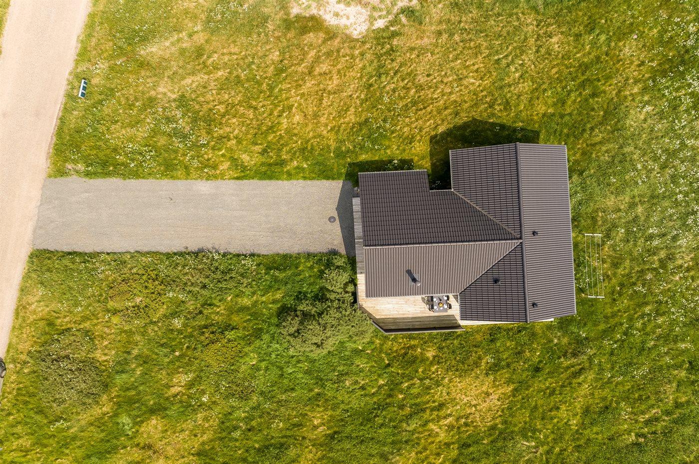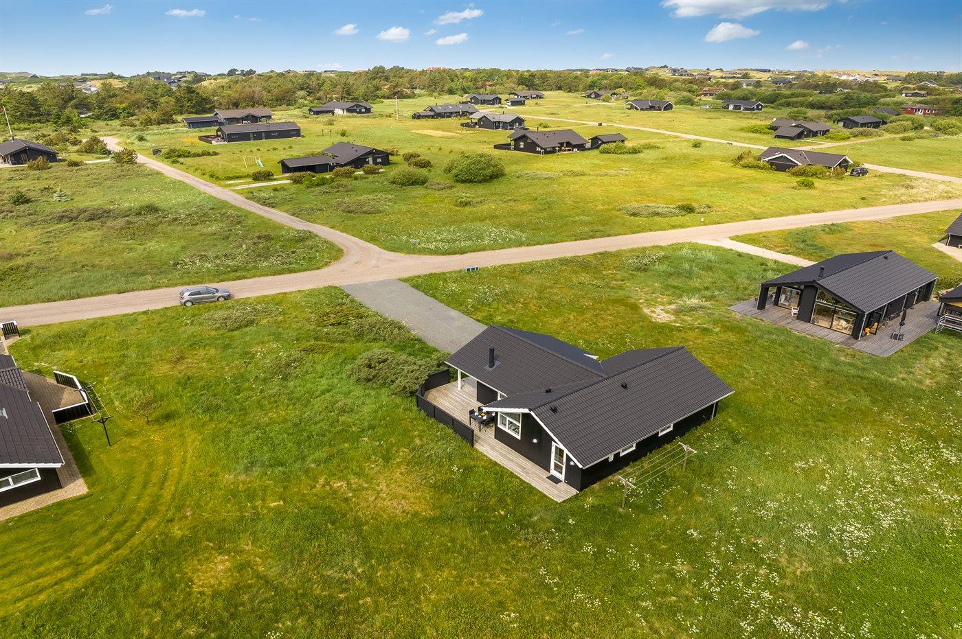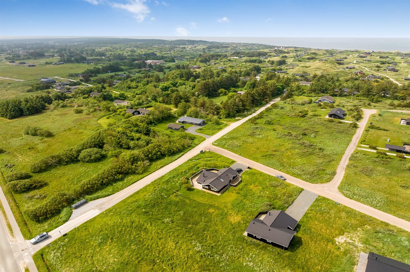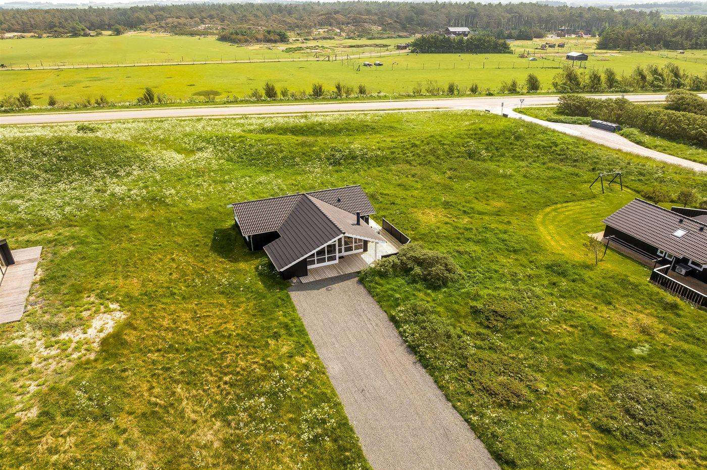 Ferieboligen er beliggende på en 2500 m² stor naturgrund. Der er 1100 m til havet. Nærmeste forretning er beliggende i en afstand af 1500 m. Til ferieboligen hører 20 m² terrasseareal. Desuden er der 12 m² overdækket terrasse. Der er redskabsrum. Grill til rådighed.