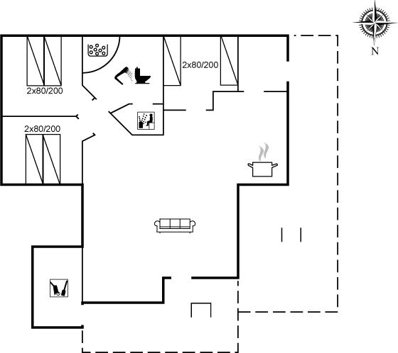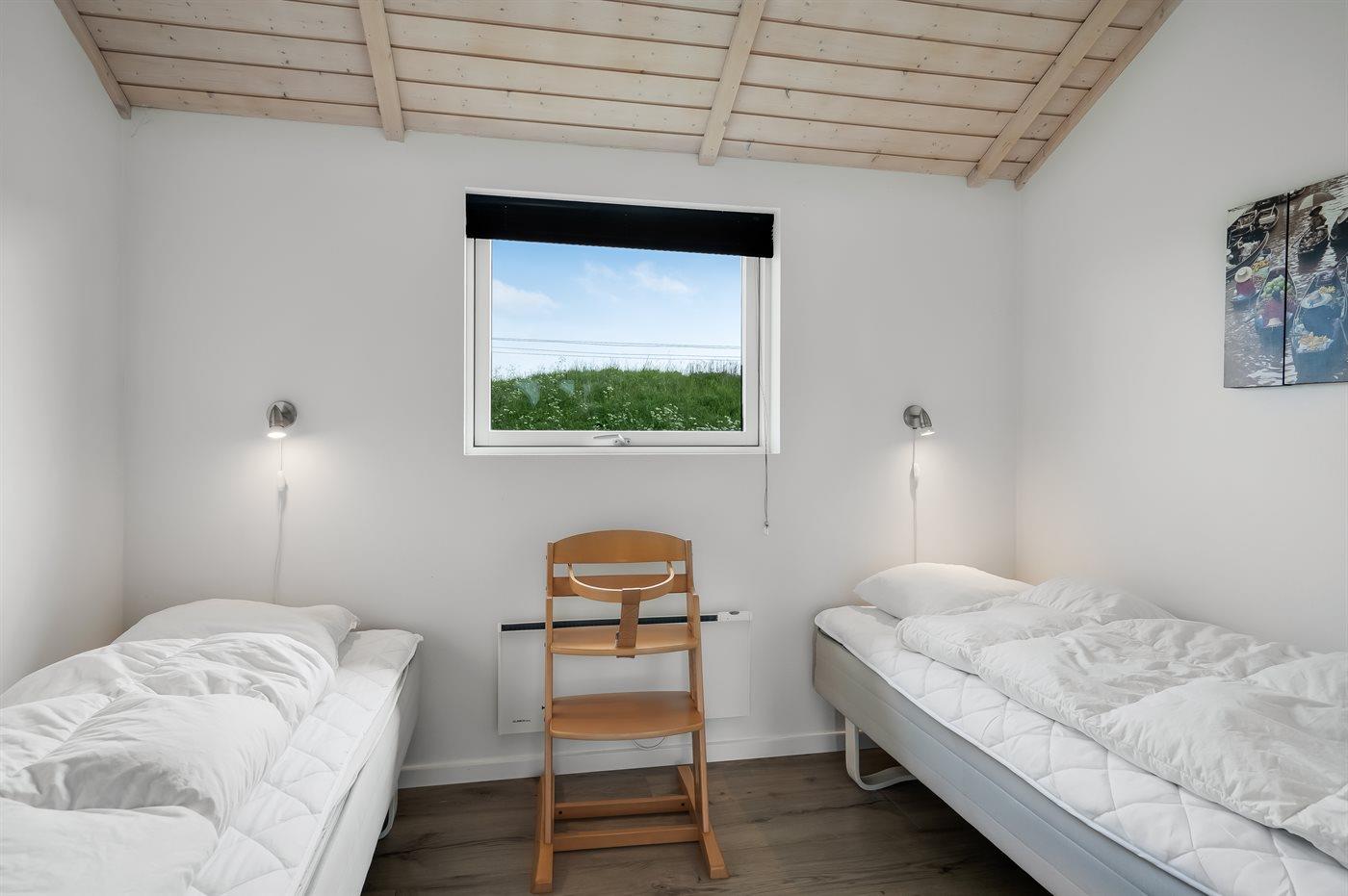 Der er i alt 3 soveværelser. Sovepladserne fordeler sig på: 4 sovepladser i dobbeltsenge. 2 sovepladser i enkeltsenge.
