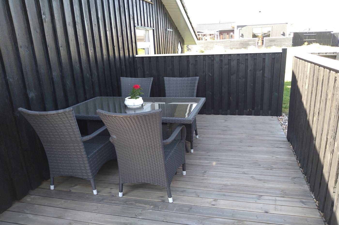 Ferieboligen er beliggende på en 2200 m² stor naturgrund. Der er 807 m til havet. Nærmeste forretning er beliggende i en afstand af 2500 m. Til ferieboligen hører 40 m² terrasseareal. Desuden er der 10 m² overdækket terrasse. Der er redskabsrum. Gynge. Parkering ved ferieboligen.