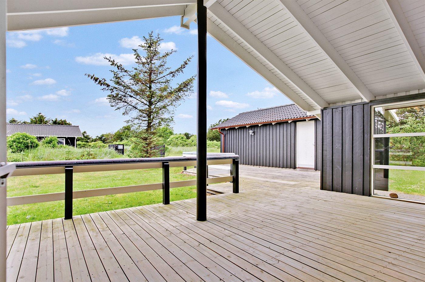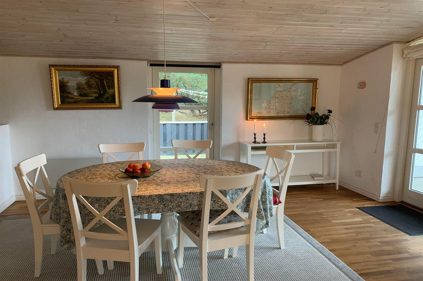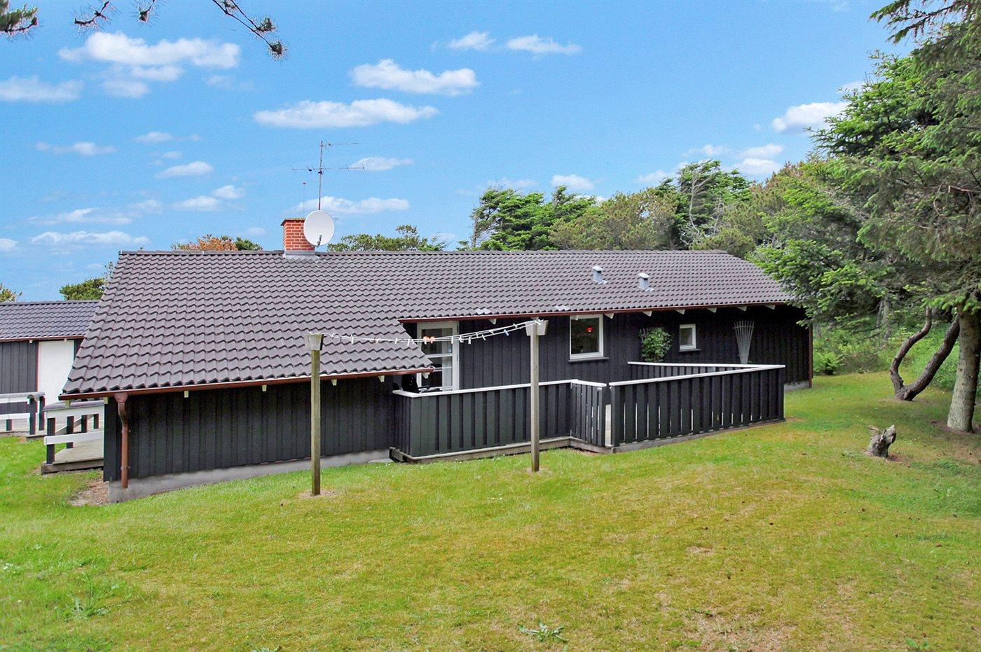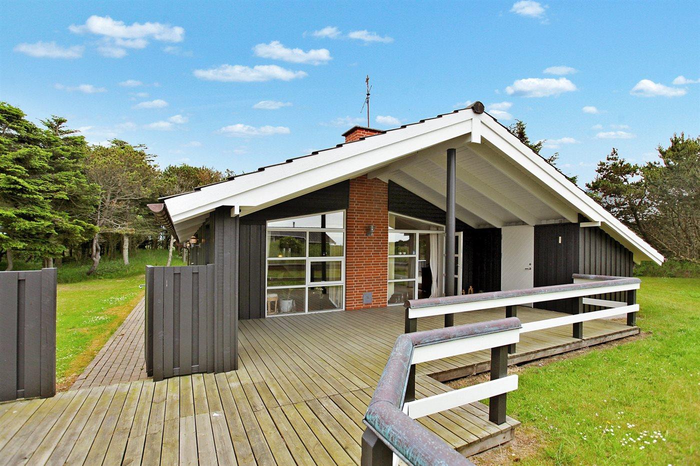 Dejligt og lyst indrettet sommerhus med god plads beliggende på en meget stor og delvis lukket grund med mange træer på halvdelen af grunden. Huset ligger desuden i et roligt og naturskønt område nær Vesterhavet og skøn badestrand samt skovarealer med flere gode vandrestier.