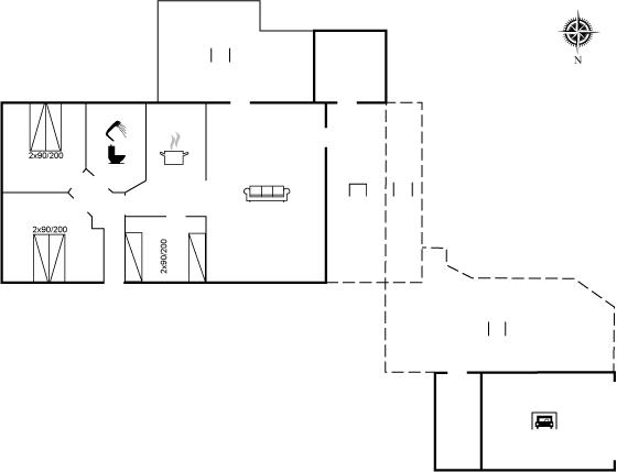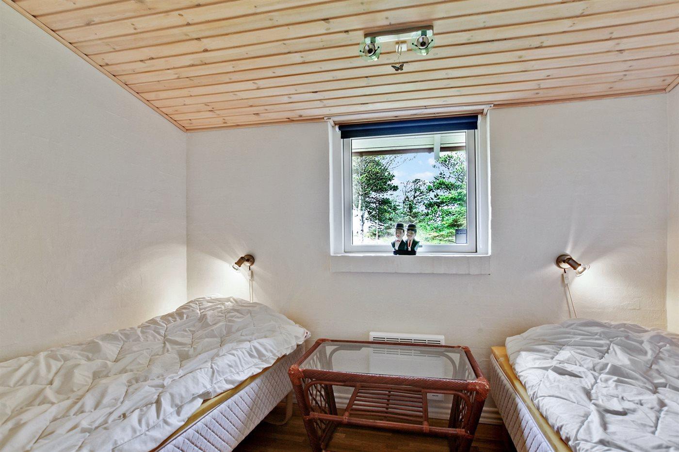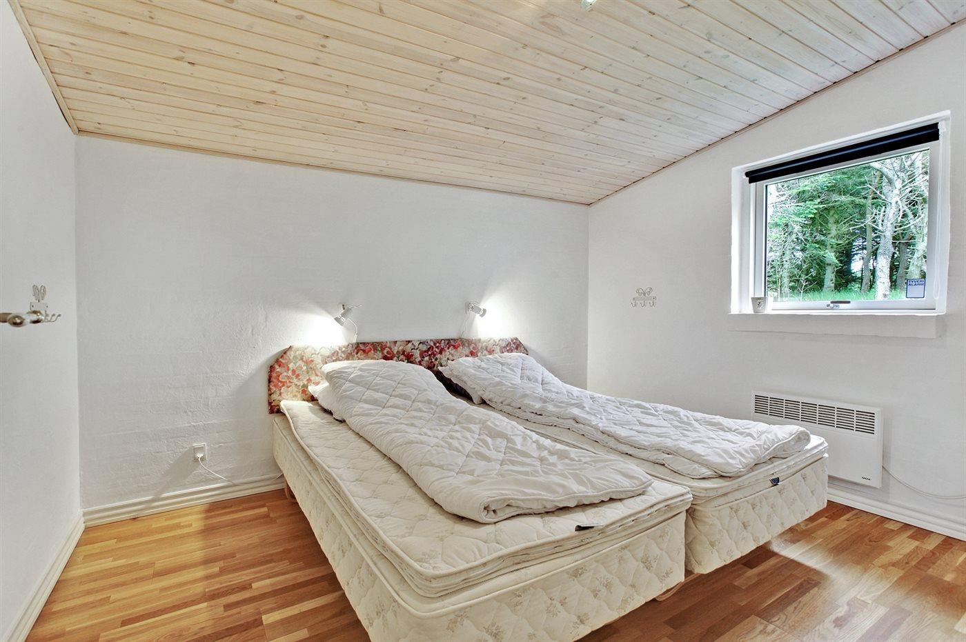 Der er i alt 3 soveværelser. Sovepladserne fordeler sig på: 4 sovepladser i dobbeltsenge. 2 sovepladser i enkeltsenge.