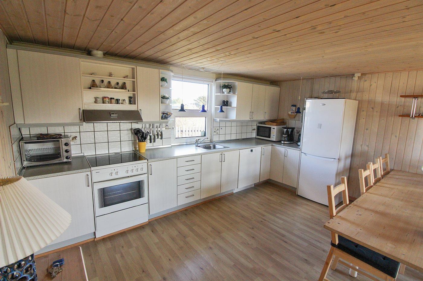 Køkkenet er udstyret med 1 køleskab. Der er 4 keramiske kogeplader, miniovn, varmluftovn, mikrobølgeovn samt opvaskemaskine.