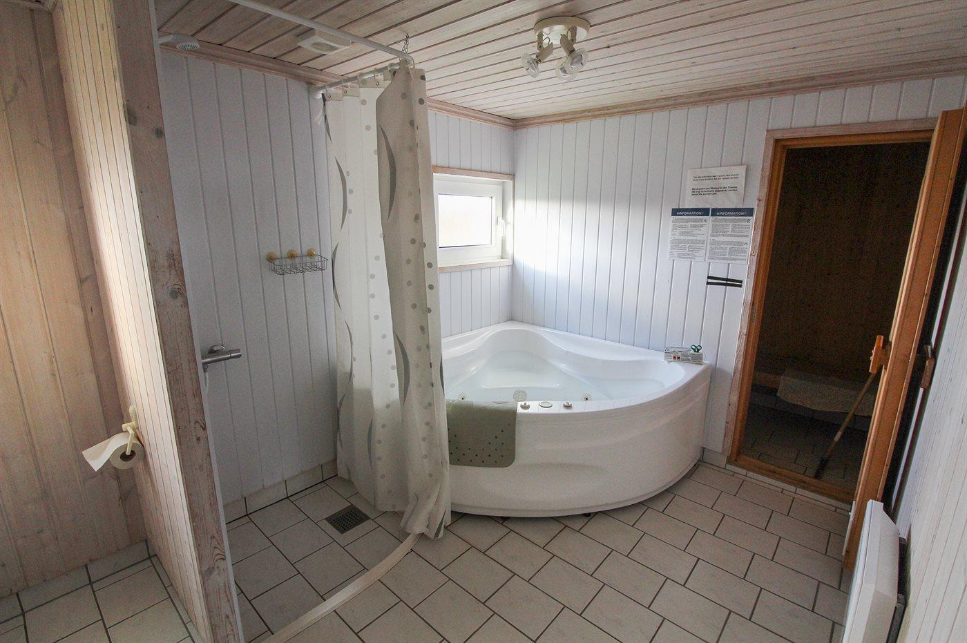 Der er 1 badeværelse med bruseniche og 1 toilet.. Der er gulvvarme på 1 badeværelse. I saunaen er der mulighed for afslapning.