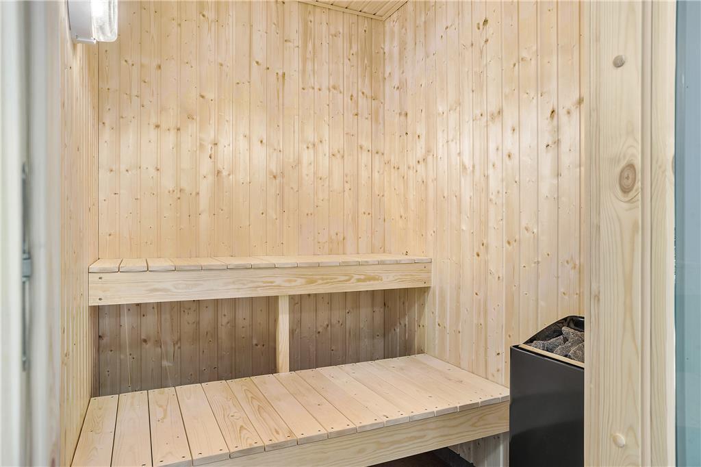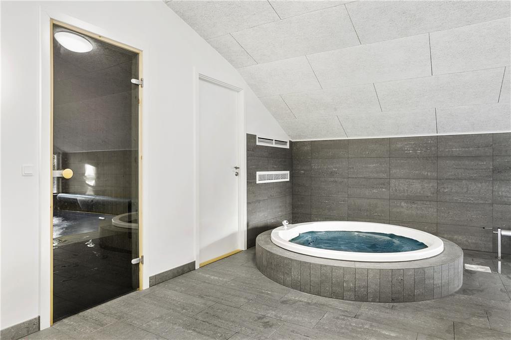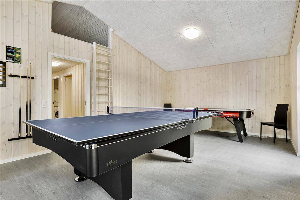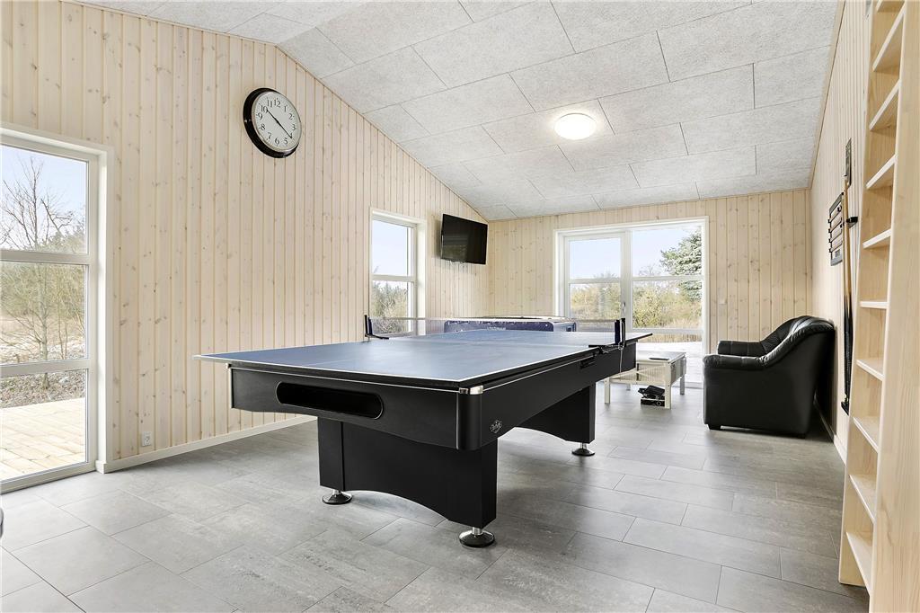 Dette store og rummelige sommerhus byder på de helt ideelle rammer, hvis familien skal fejre stor fødselsdag eller man gerne vil holde ferie sammen med en anden familie. Huset har syv værelser og tre hemse til rådighed, i alt 20 sovepladser. Derudover også tre badeværelser og et stort køkken-alrum med stue. Fra køkkenet vil man kunne holde øje med, hvad der sker i det tilhørende poolrum med både bassin og standvandsspa. Og bliver børnene trætte af vandet, kan de more sig mange timer i aktivitetsrummet, hvor de kan vælge mellem billard, bordtennis og airhockey; ikke noget at sige til, hvis de bliver trætte om aftenen! Alt i sommerhuset vil være i den bedste stand, og byggematerialer, inventar, møbler og senge er nøje udvalgt for at holde kvaliteten i top. Der er alt i hårde hvidevarer og andre moderne faciliteter, heriblandt også trådløst internet, jordvarme og andre energibesparende tiltag.