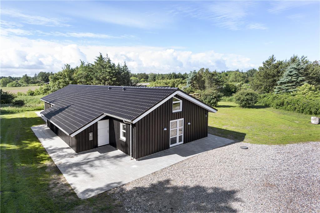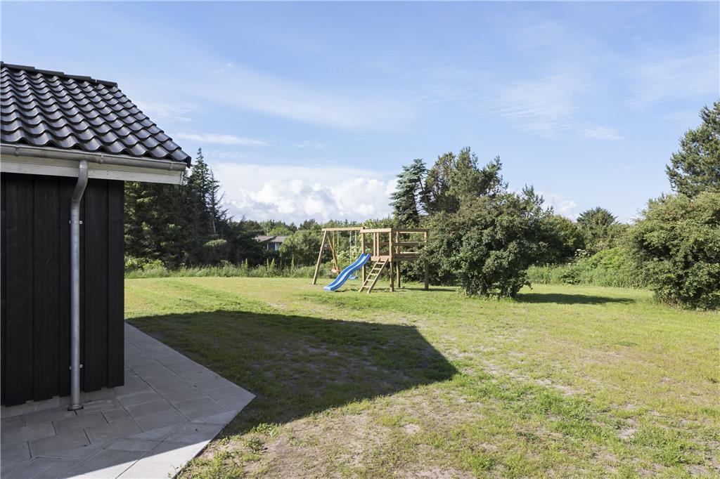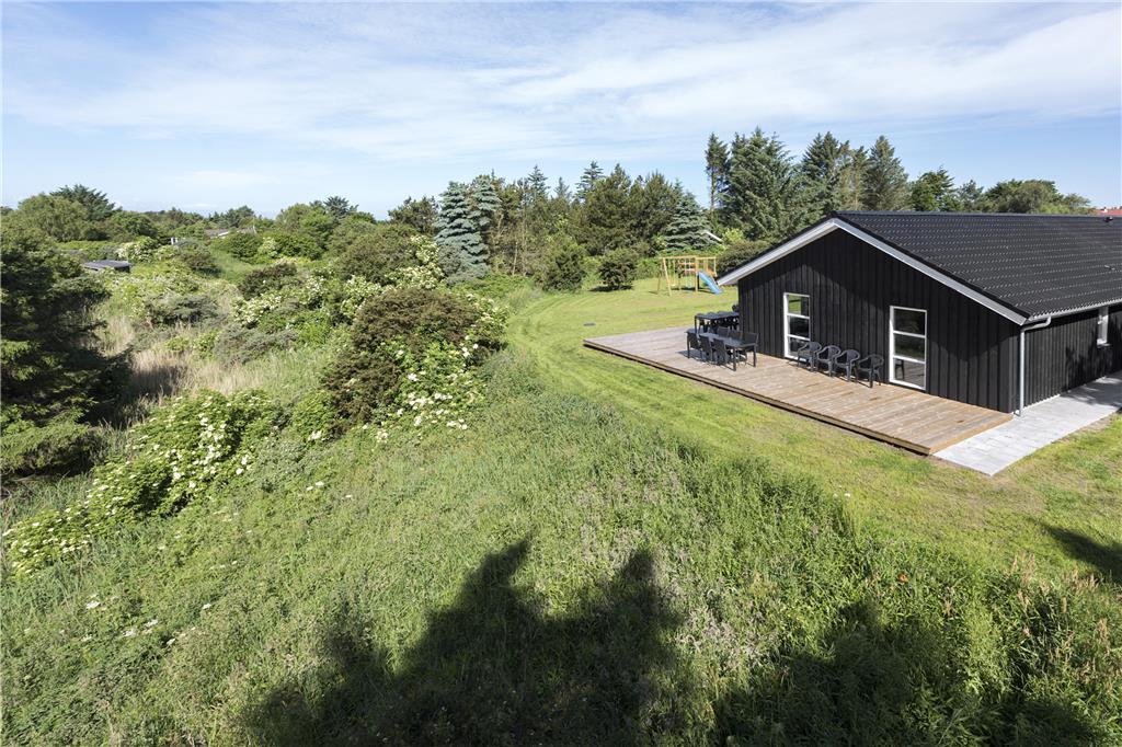 Sommerhuset ligger på en kæmpe naturgrund, så også udenfor er der mange muligheder for at lege og spille og bruge en masse energi. Der er en flot terrasse i det sydvestlige hjørne, så også de voksne kan nyde sommerlivet med solbadning, grillmad og hygge på de lange, lune aftener.
