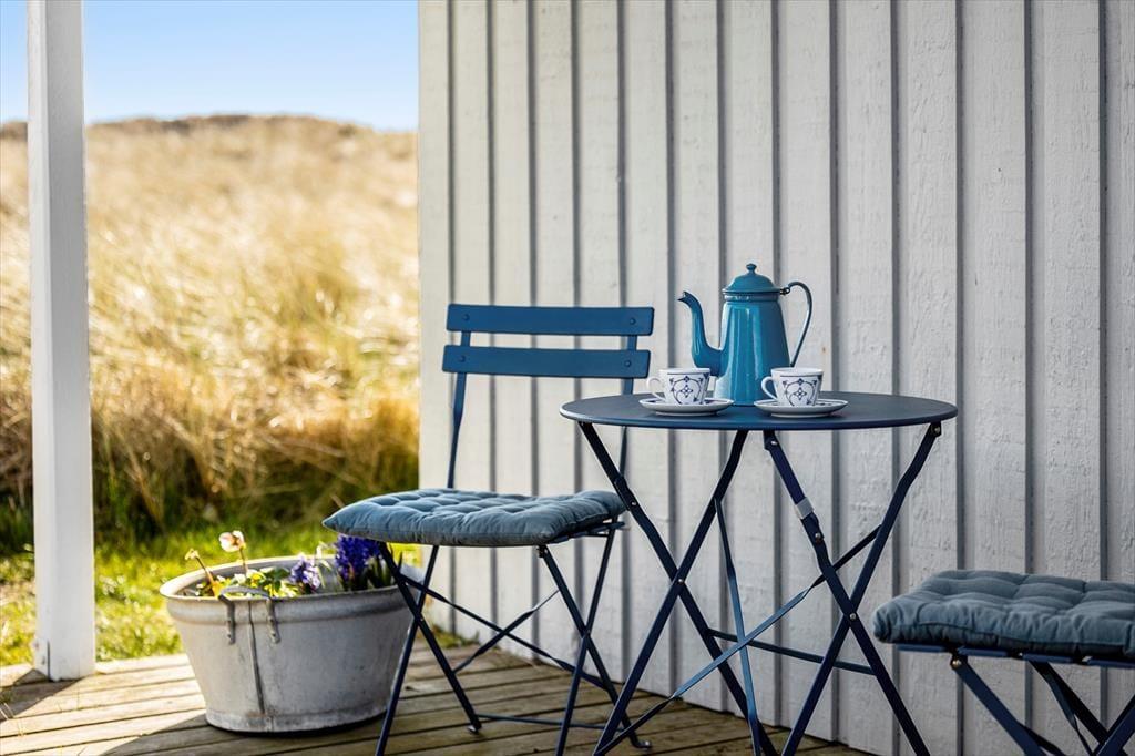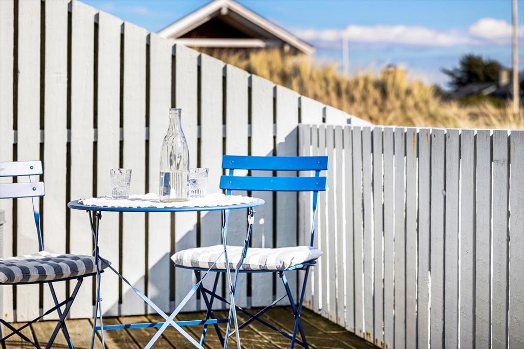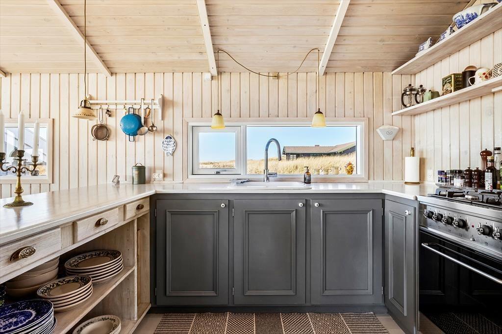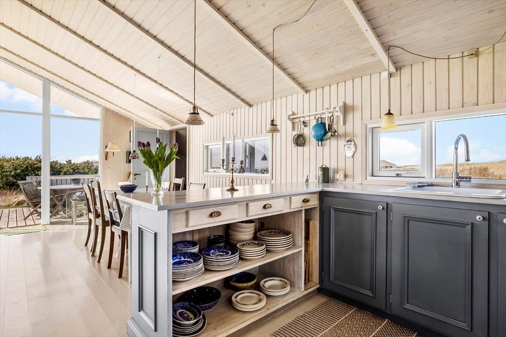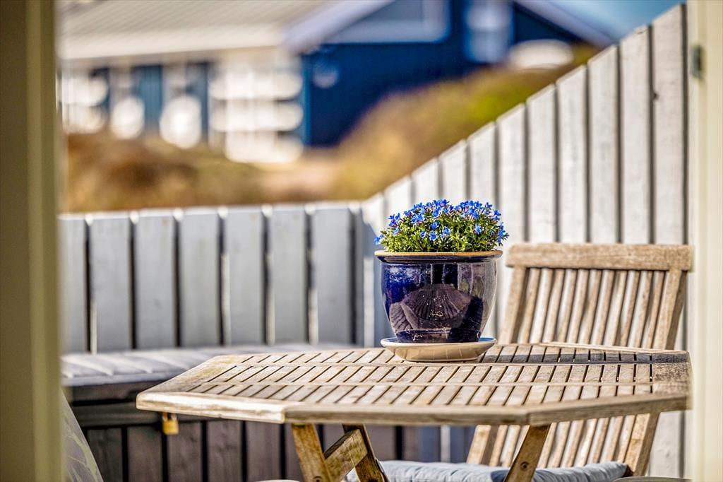 Dette sommerhus er opført i 1985 og er godt vedligeholdt gennem årene. Det har den helt rigtige sommerhusstemning med masser af lys fra de store vinduer, loft til kip, hvidmalede gulve i alle rum, en flot brændeovn, en charmerende indretning med loppefund, afdæmpede farver og varme tekstiler, og sidst men ikke mindst en smuk udsigt til klitlandskabet og Vesterhavet. Huset egner sig til 2-4 personer og består af tre soveværelser, et badeværelse med bruser og et stort, åbent køkken-alrum, hvor alle kan mødes til madlavning, spisning og hygge med spil, snak eller en god film. Af moderne faciliteter kan nævnes både vaskemaskine, tørretumbler, kabel-tv og trådløst Wi-Fi, så medbring gerne pc eller tablets, så det er nemt at søge på informationer om områdets mange attraktioner og muligheder.