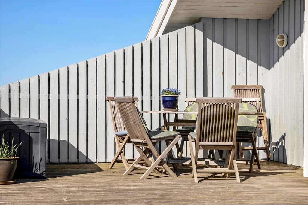 Sommerhuset ligger på en stor naturgrund i klitlandskabet, så tæt på Vesterhavet at man kan se og dufte vandet og høre bølgerne bruse. Rundt om huset er der flere terrasser og gode lækroge, så man kan udnytte alle sommerens solskinstimer til fulde.