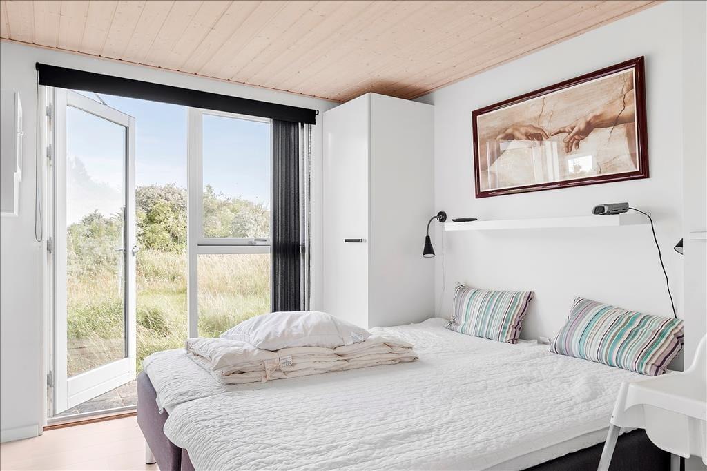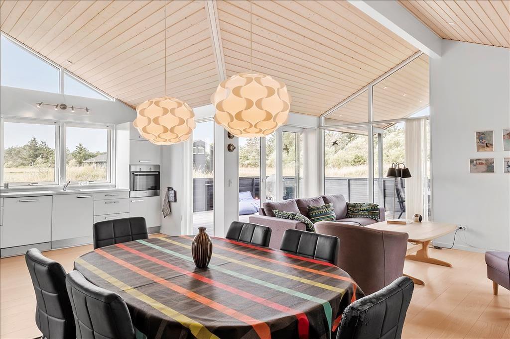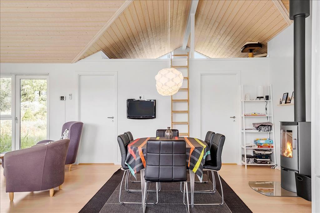 Der er helt klart også mulighed for at koble af og få ny energi, når I tilbringer tiden inden døre i sommerhuset. Det er indrettet med mange lækre detaljer – inklusiv spabad på et af de to badeværelser, brændeovn i stuen og et velindrettet køkken, hvor I kan hygge jer med at lave mad sammen. Køkken og stue ligger samlet midt i huset, og det dejlige opholdsrum er udstyret med store vinduer, der giver et godt lysindfald og fri udsigt over det åbne sommerhusområde. Husets tre soveværelser, der alle er indrettet med dobbeltseng, har også store vinduespartier med havedør til terrassen.