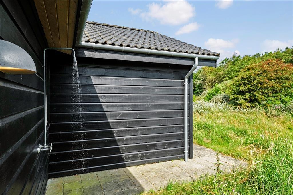 Takket være de mange havedøre er det nemt at træde ud i det fri for at nyde solskinnet. Rundt om huset er der flere terrasser, inklusiv en delvist overdækket og helt aflukket terrasse, hvor hundeejere kan lade de firbenede familiemedlemmer gå frit. Ude i det fri har I alt, hvad I skal bruge for at nyde livet i form af havemøbler, liggestole, parasol og grill, og der er også en udendørs bruser. Og så kommer middagsluren i øvrigt til at foregå i ugenerede omgivelser, for udelivet skærmes af bevoksningen på den store naturgrund.