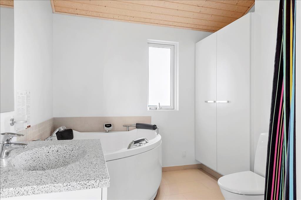 Sommerhuset ligger for enden af en lukket vej, og herfra er der ikke langt til Tornby Strand, så turen kan sagtens foregå til fods gennem det smukke kystlandskab. Det er et skønt sted at bade, og hvis vejret lægger mere op til at pakke sig ind i vindjakke og halstørklæde, føles det også velgørende at gå lange ture langs Vesterhavet. Vil I på en familievenlig udflugt, er der særdeles kort afstand til Fun-Park Hirtshals, hvor I kan lege på legepladsen og se på de mange spændende dyr. Det er også oplagt at køre ind til Hirtshals by, uanset om målet er at besøge fyret, gå på restaurant og shoppe eller opleve stemningen på byens imponerende store havn.