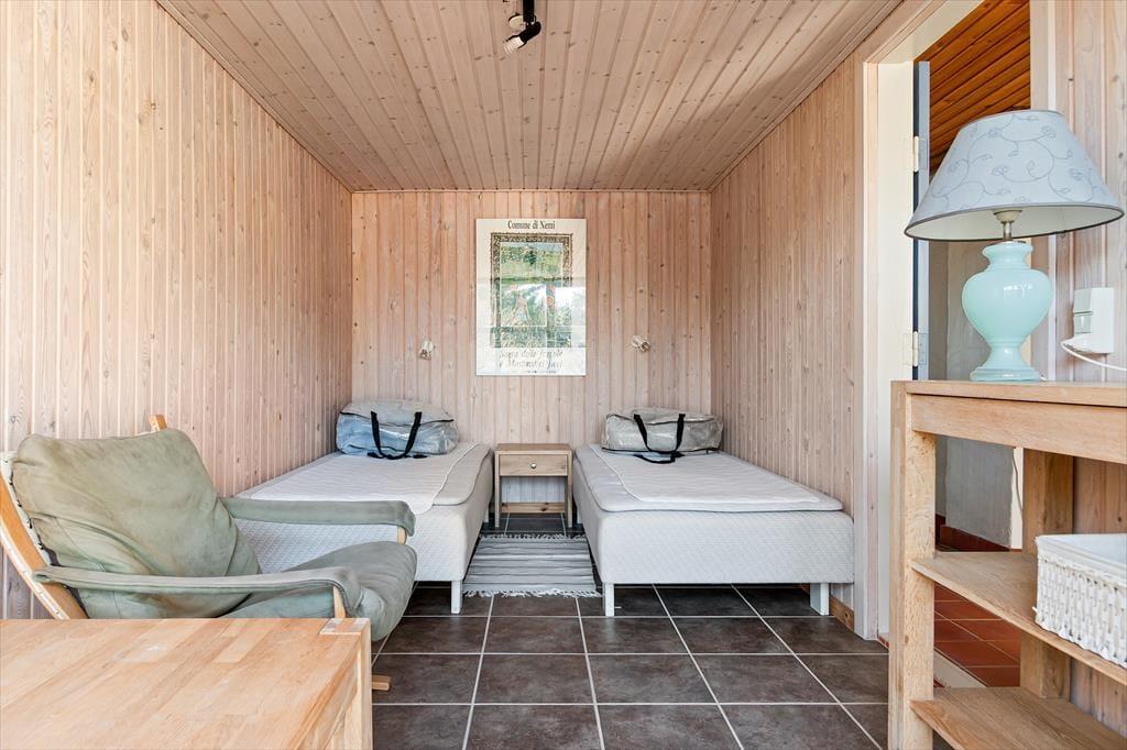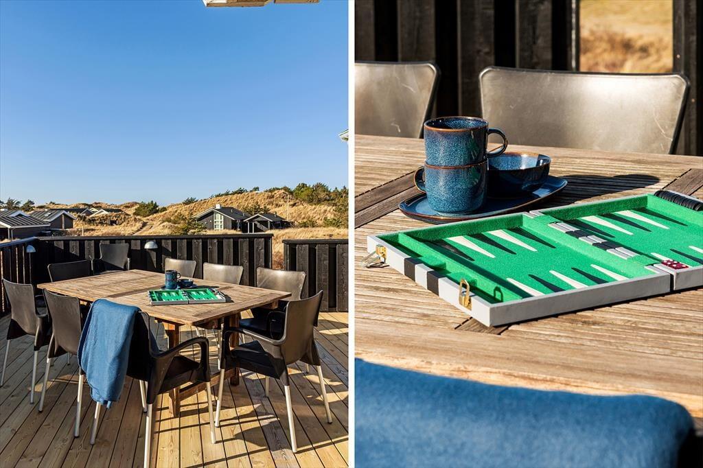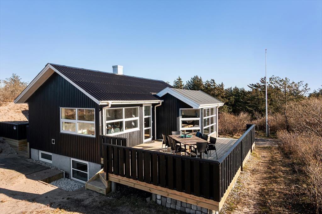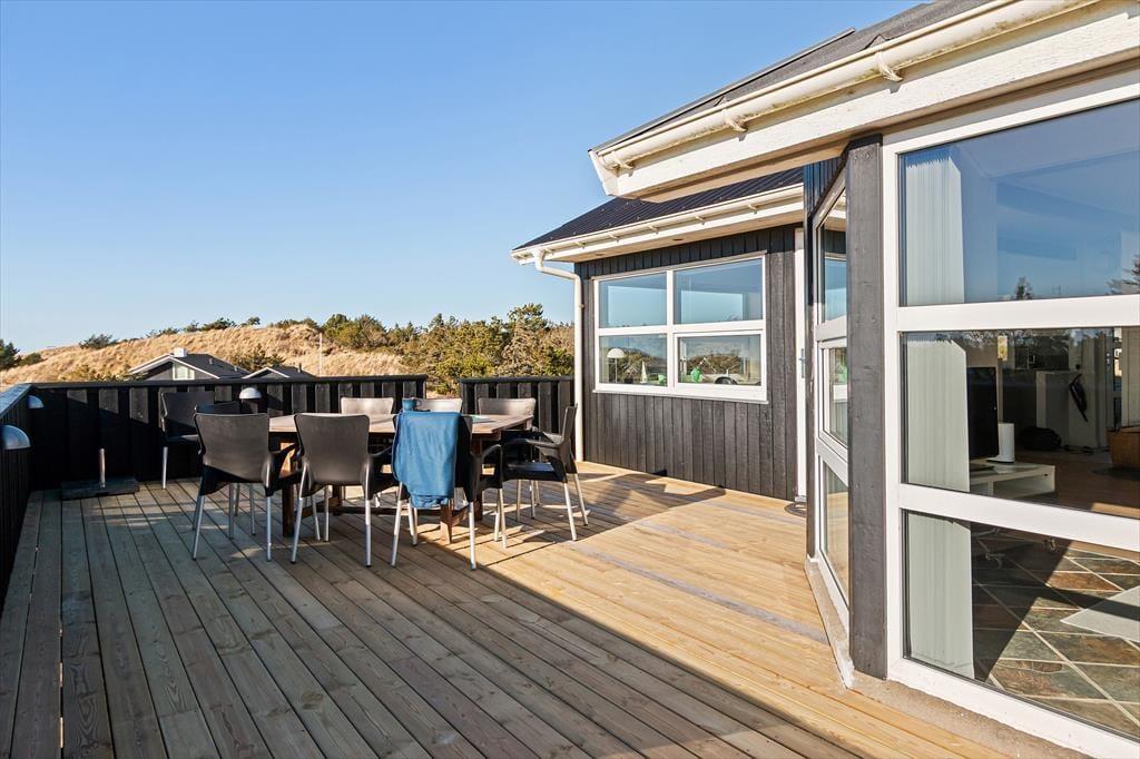 Sommerhusets terrasse omkranser hele huset, hvilket giver masser af muligheder for at finde et perfekt sted at sidde – uanset om du ønsker at fange solens varme om morgenen, eller om du vil nyde en dejlig middag på en af de flere solrige eller skyggefulde pladser om eftermiddagen. Fra terrassen kan du kigge ud over den store grund og den smukke natur. Den friske havbrise og den afslappede atmosfære gør det til et ideelt sted at tilbringe feriedagene. Om aftenen kan du nyde solnedgangen over havet og måske tænde op i grillen, mens du deler gode stunder med familien.