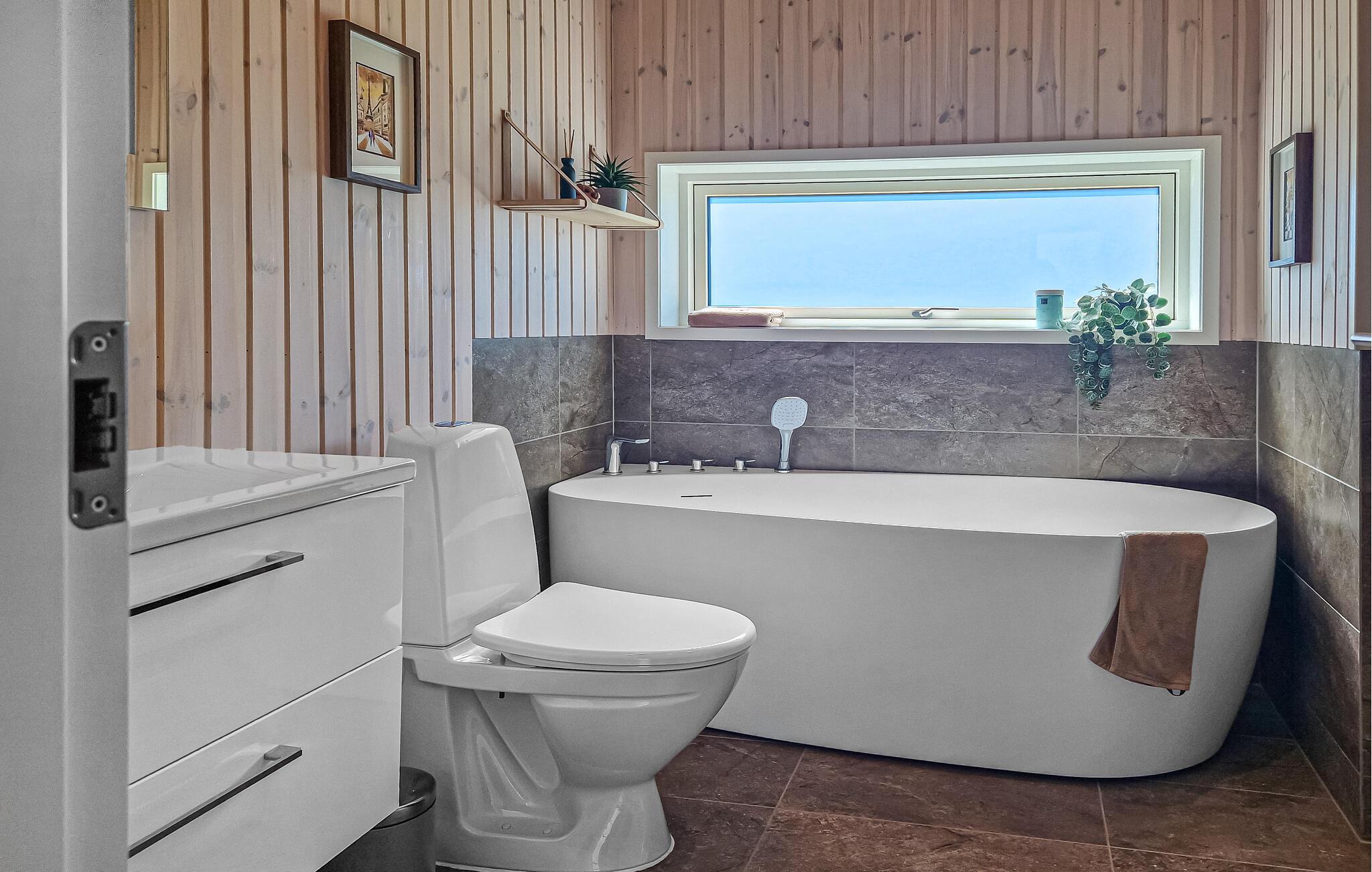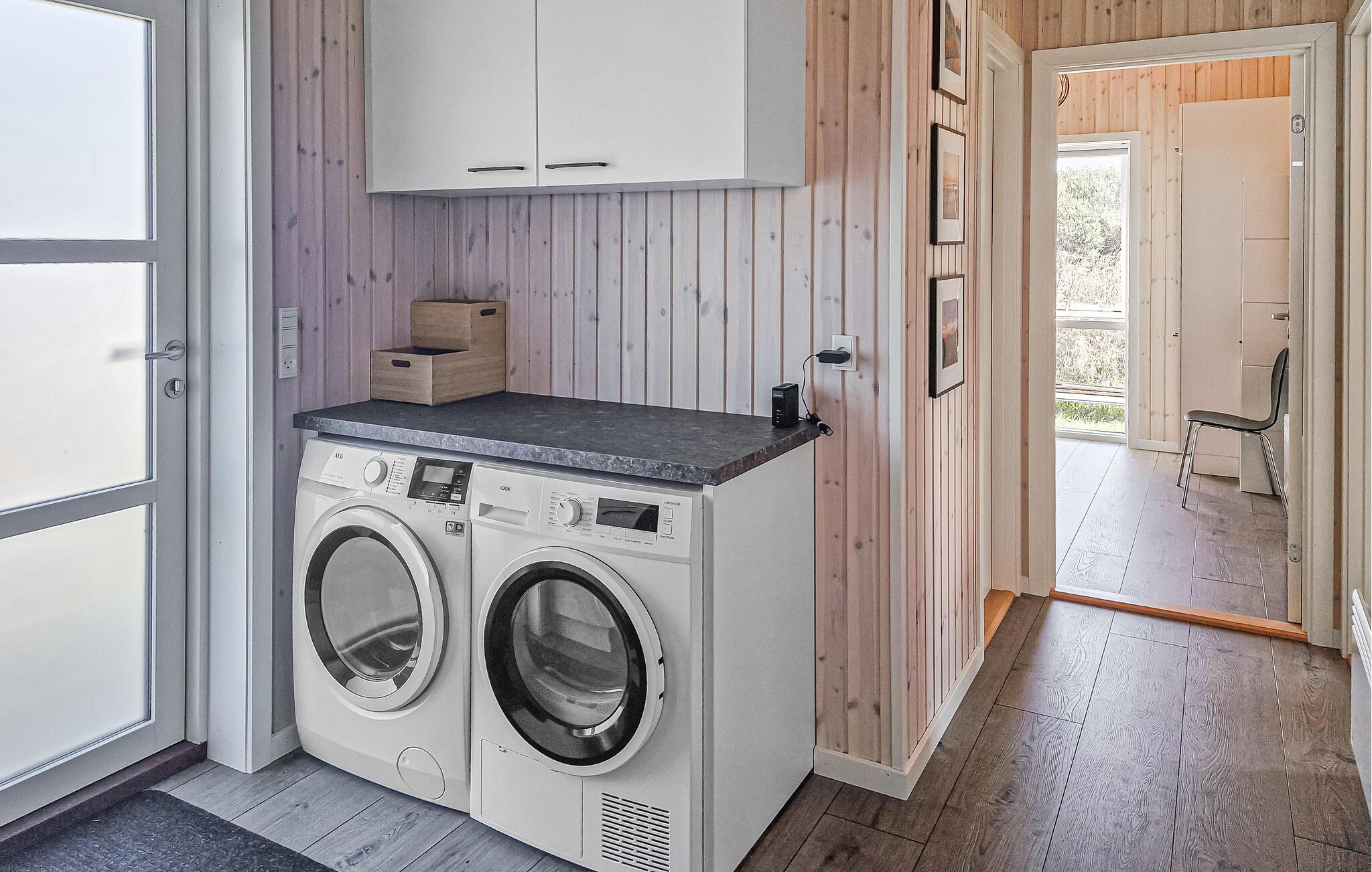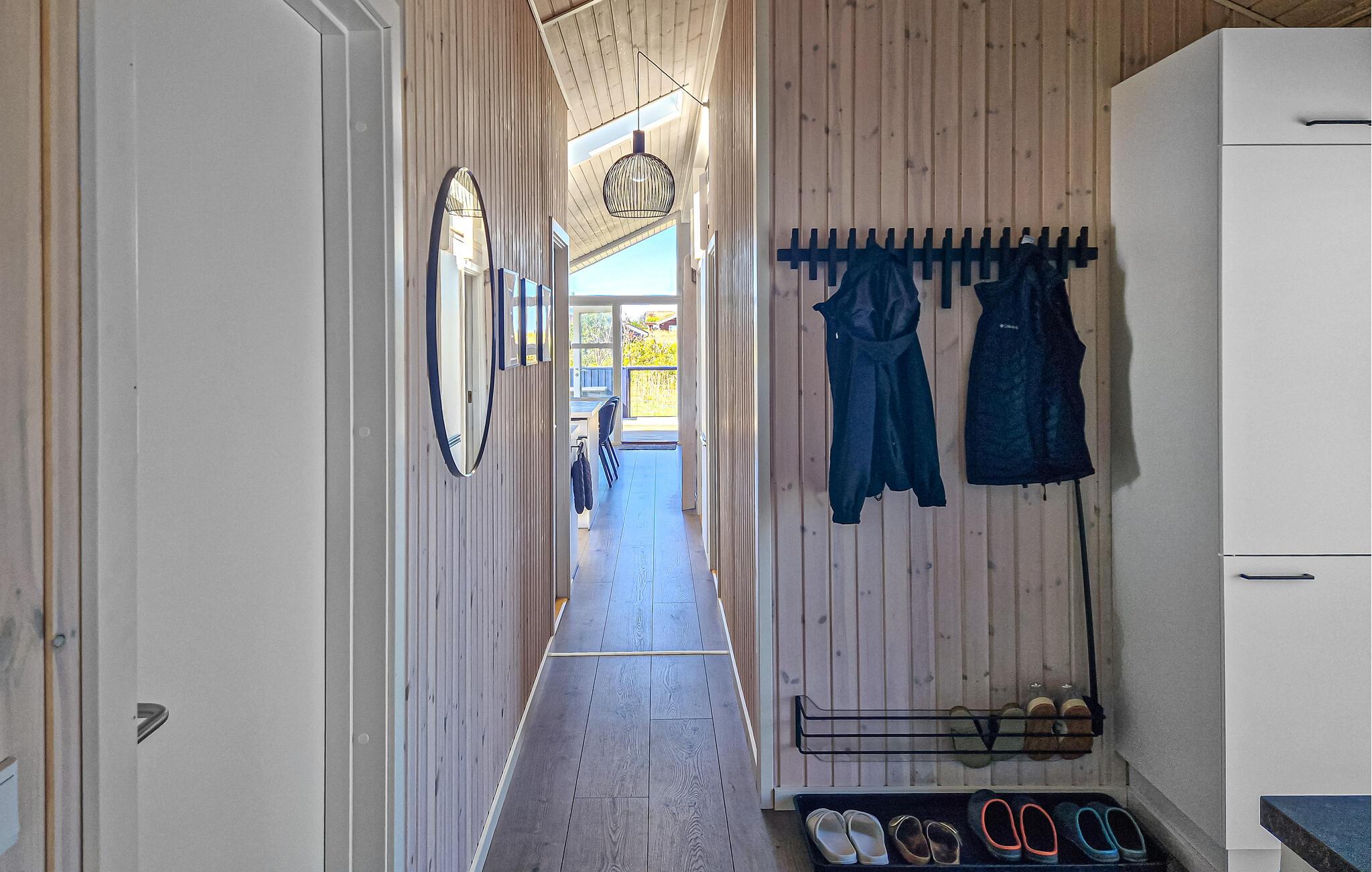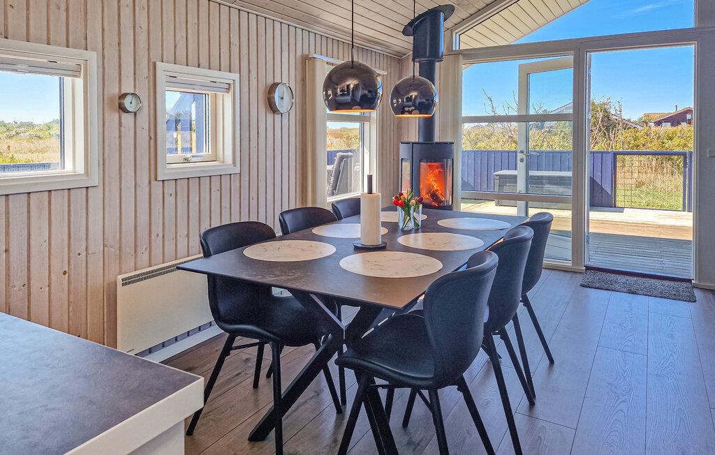 Bliv betaget af de lyse møbler og mange faciliteter i jeres feriehus. Træd ind i stuen med store vinduer og masser af naturligt lys. Gør det behageligt i sofaerne og Sæt jer til rette med en god film på det store tv. Brug spiseområdet med pejs til fælles måltider i stemningsfulde omgivelser. Lav mad i det moderne køkken, der er udstyret med rigelig bordplads og nyd det åbne design, der giver plads til hele familien.