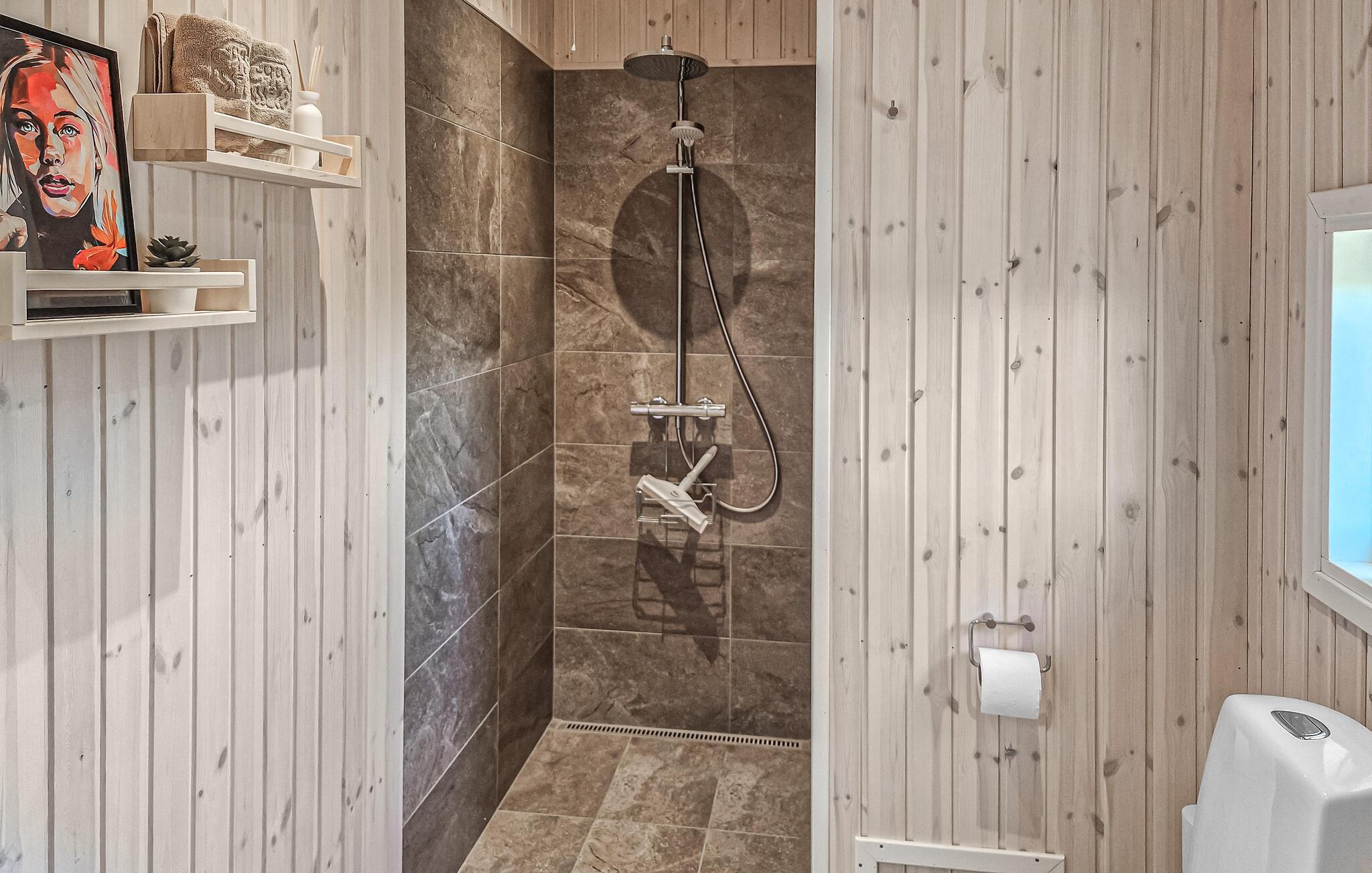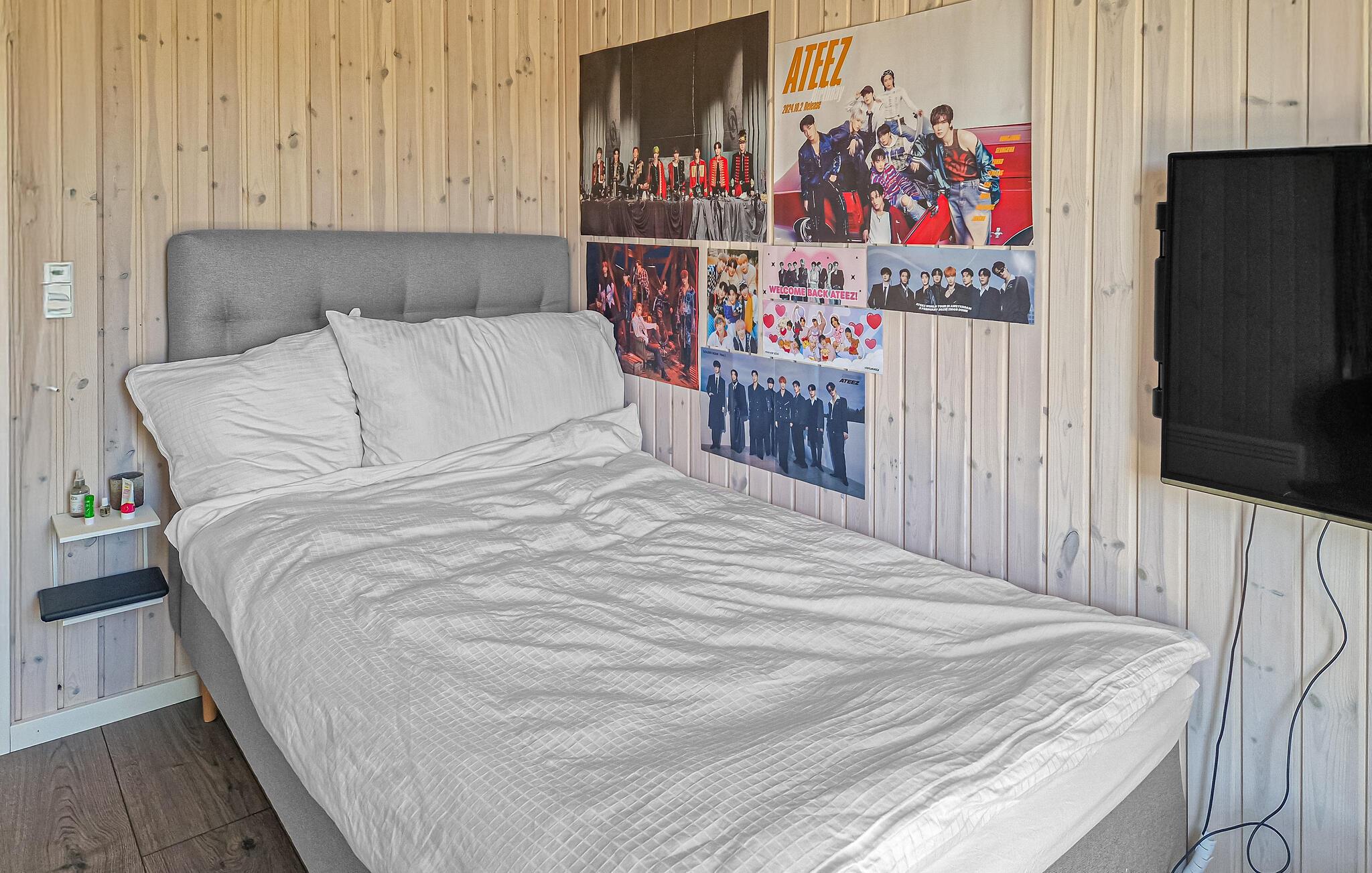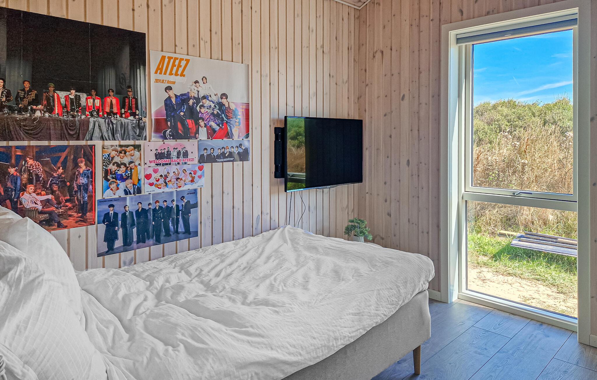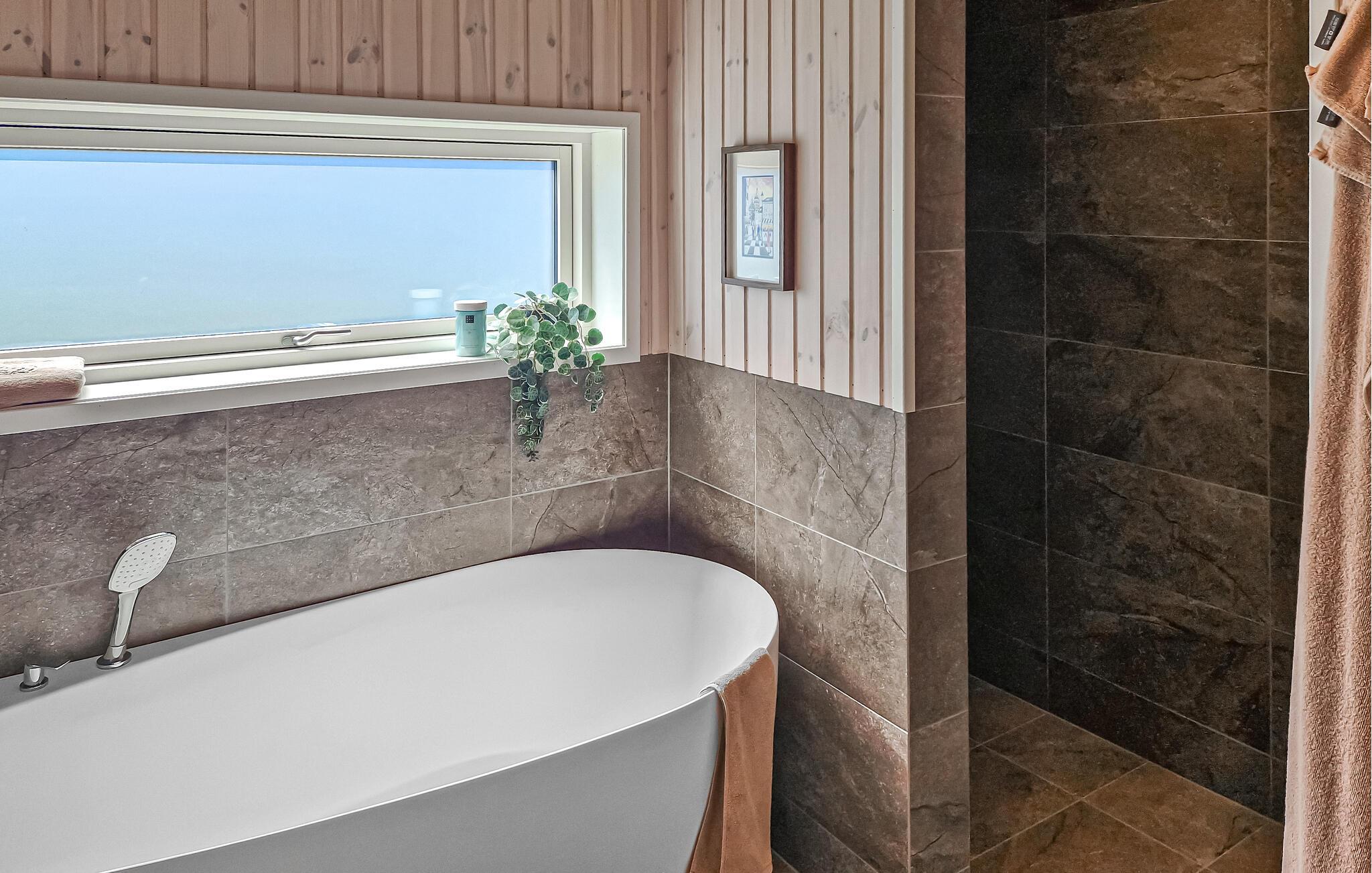 Bliv betaget af de lyse møbler og mange faciliteter i jeres feriehus. Træd ind i stuen med store vinduer og masser af naturligt lys. Gør det behageligt i sofaerne og Sæt jer til rette med en god film på det store tv. Brug spiseområdet med pejs til fælles måltider i stemningsfulde omgivelser. Lav mad i det moderne køkken, der er udstyret med rigelig bordplads og nyd det åbne design, der giver plads til hele familien.
