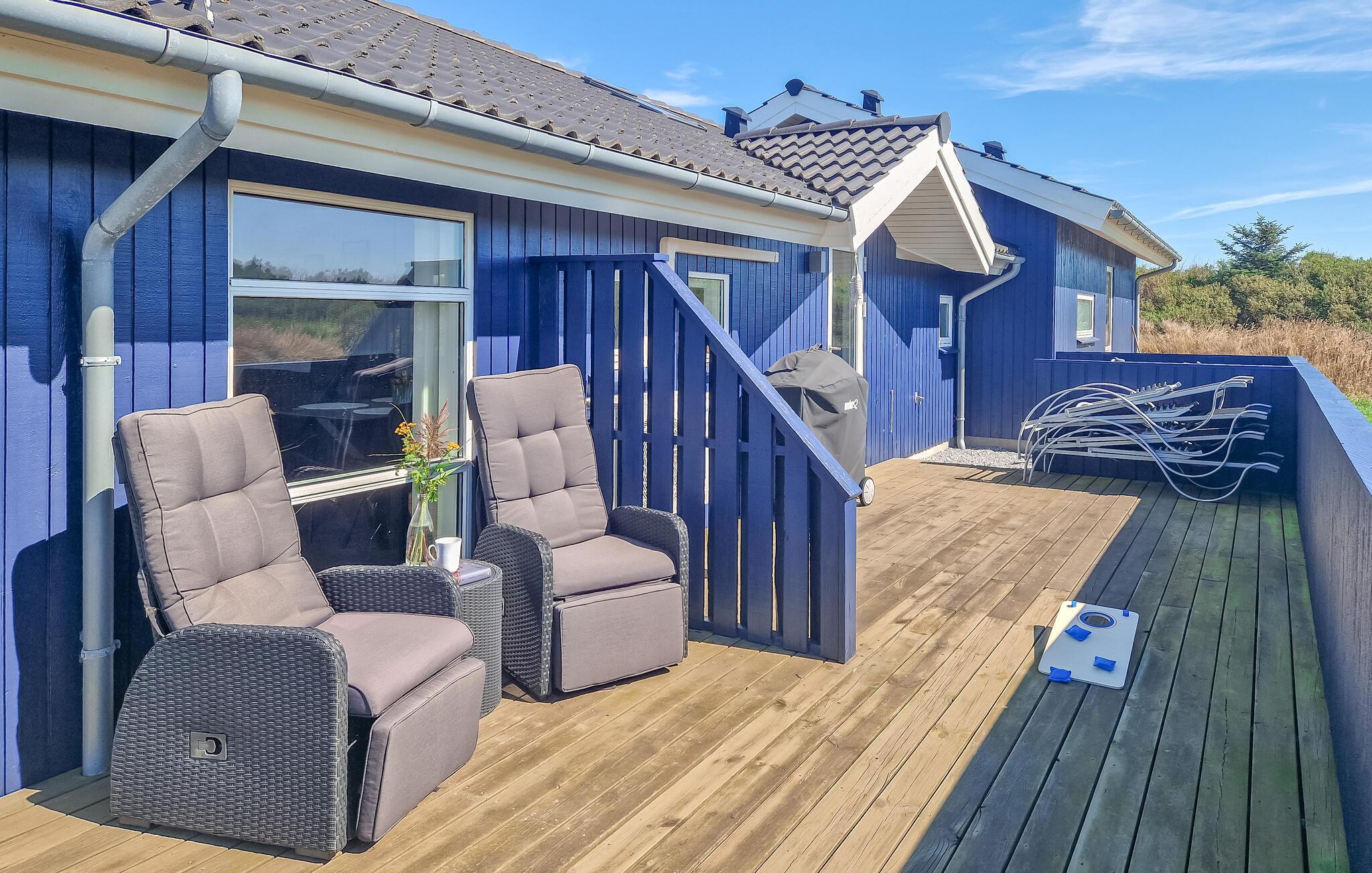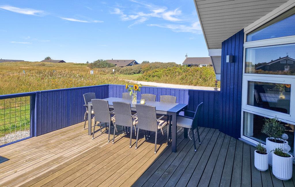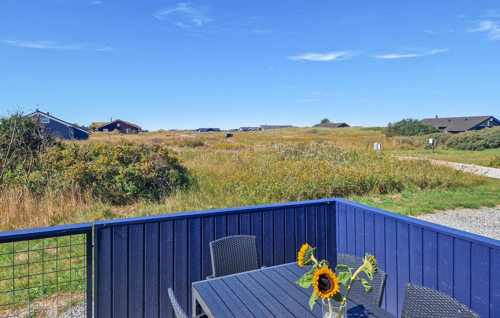 Oplev komfort og natur i dette lyse feriehus nær Vesterhavet med stor terrasse og moderne faciliteter.