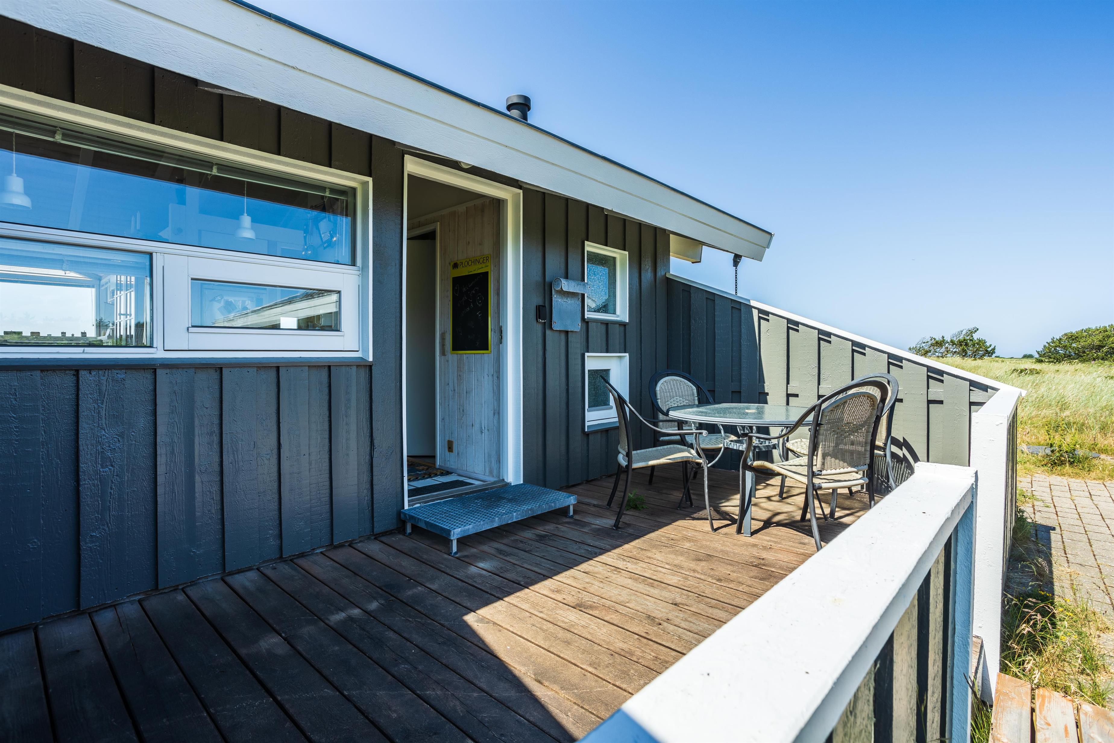 Udendørs venter flere hyggelige træterrasser, hvor I kan følge solens gang hele dagen. Slap af på den overdækkede terrasse med en god bog, eller nyd hyggelige grillaftener i solnedgangens skær. De grønne omgivelser og nærheden til naturen gør det nemt at koble af og nyde feriestemningen.